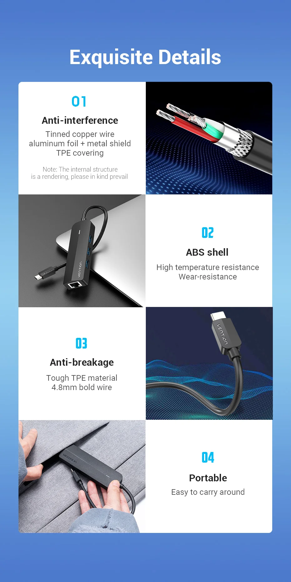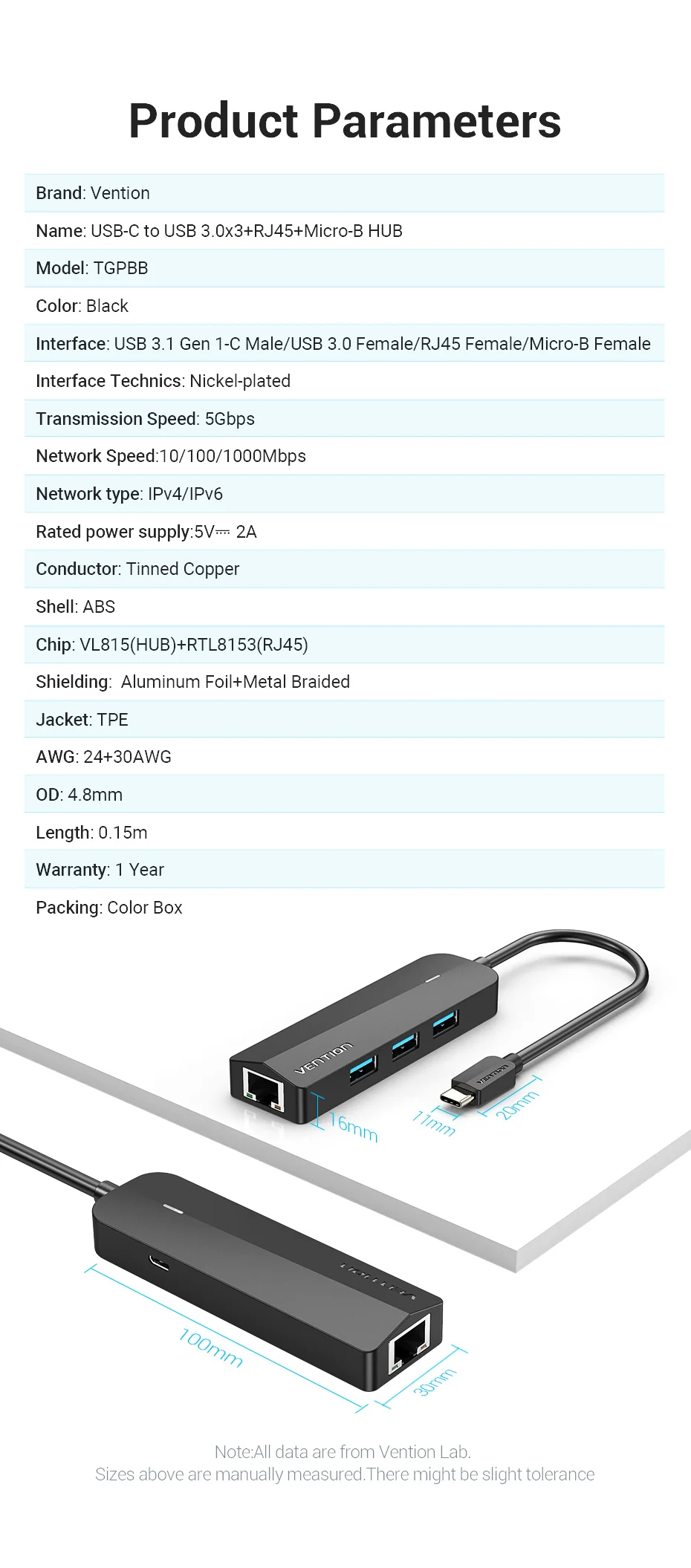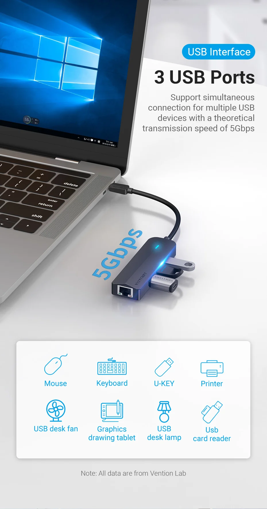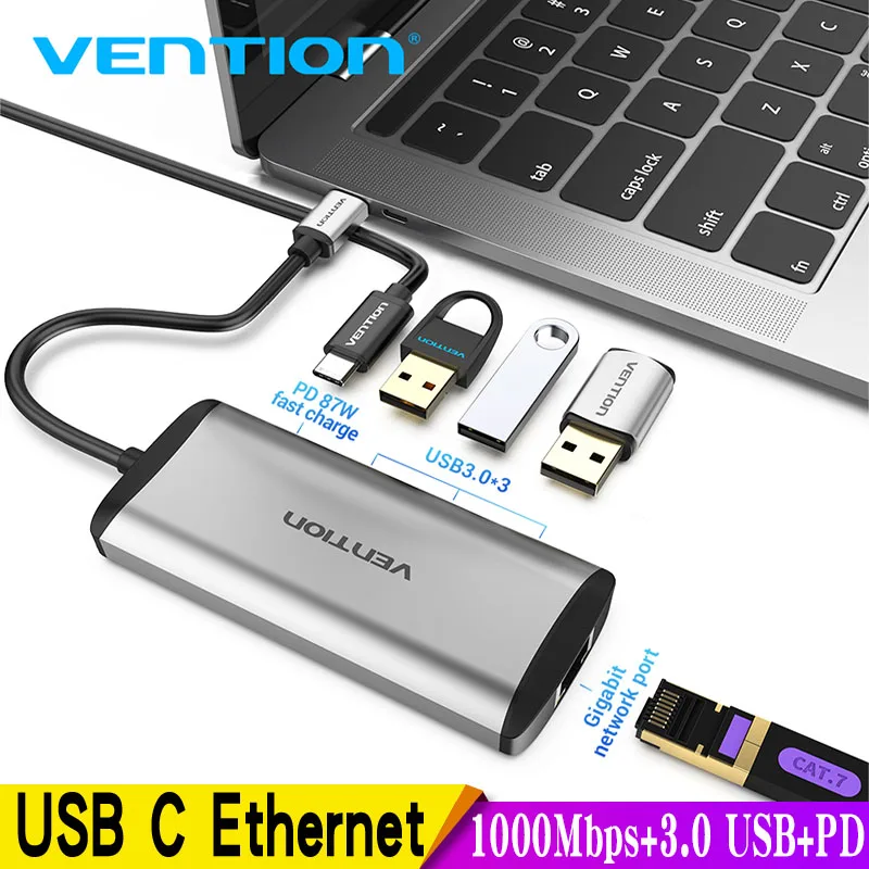 Comprar Vention-Adaptador de Ethernet USB tipo C, USB-C a RJ45, Hub para MacBook Pro, Samsung Galaxy S20/Note 10, tarjeta de red tipo C