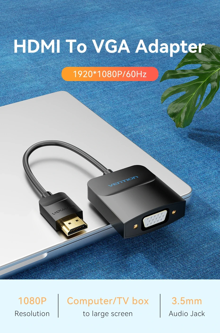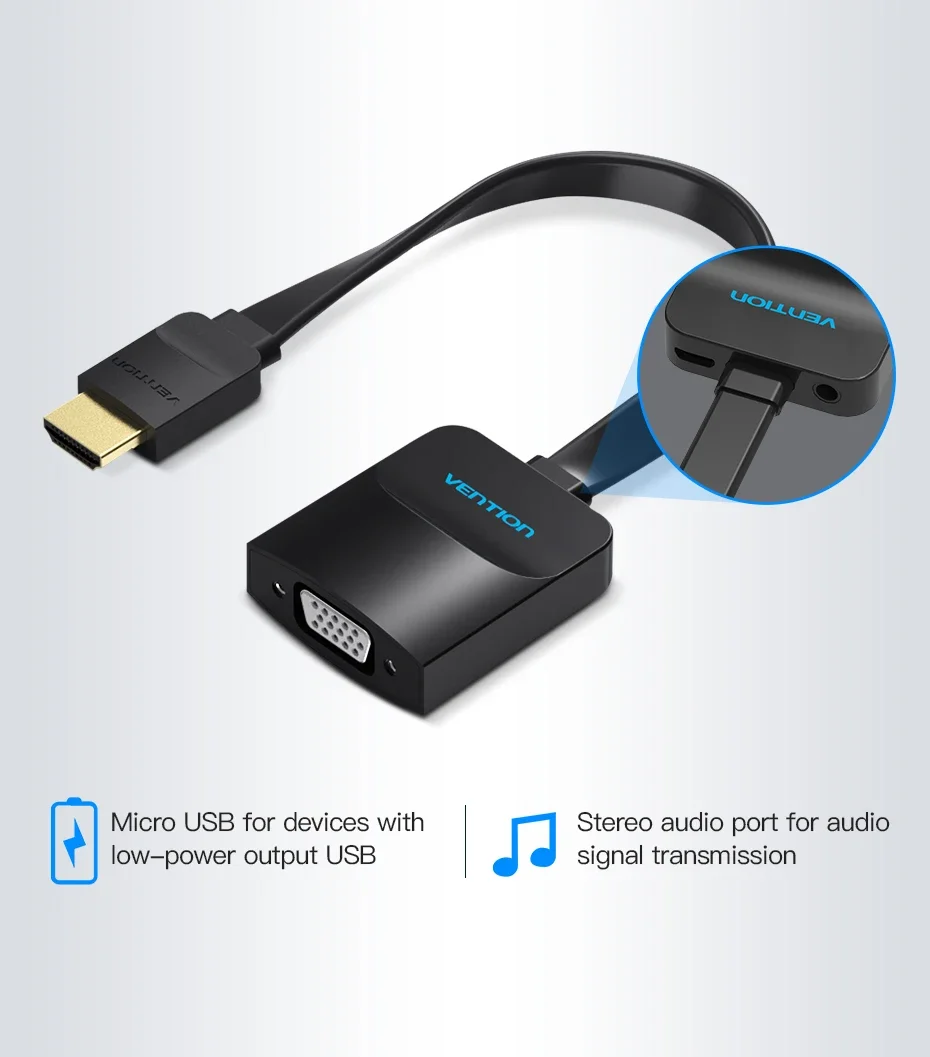 Comprar Vention-adaptador HDMI a VGA, convertidor de Cable de Audio HD 1080P con conector 3,5 para PS4, portátil, PC, proyector