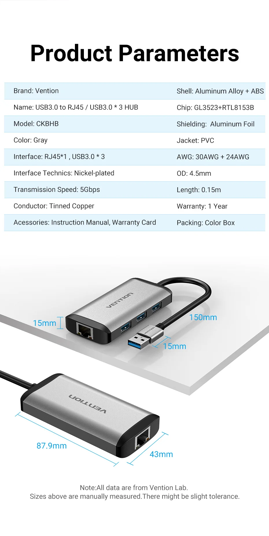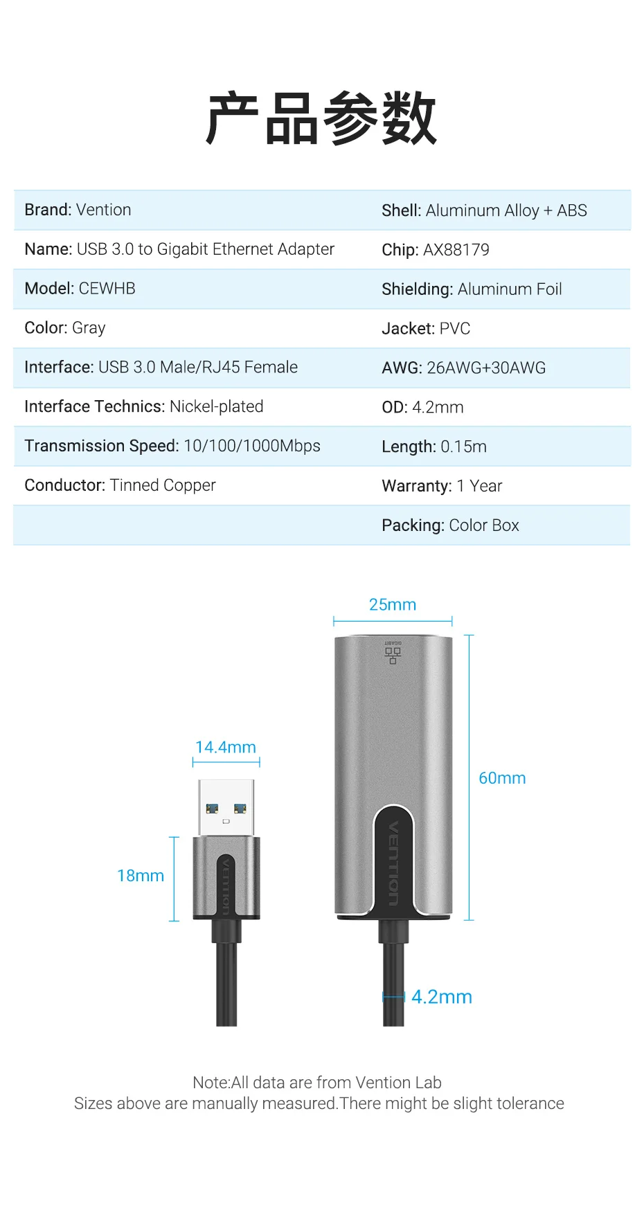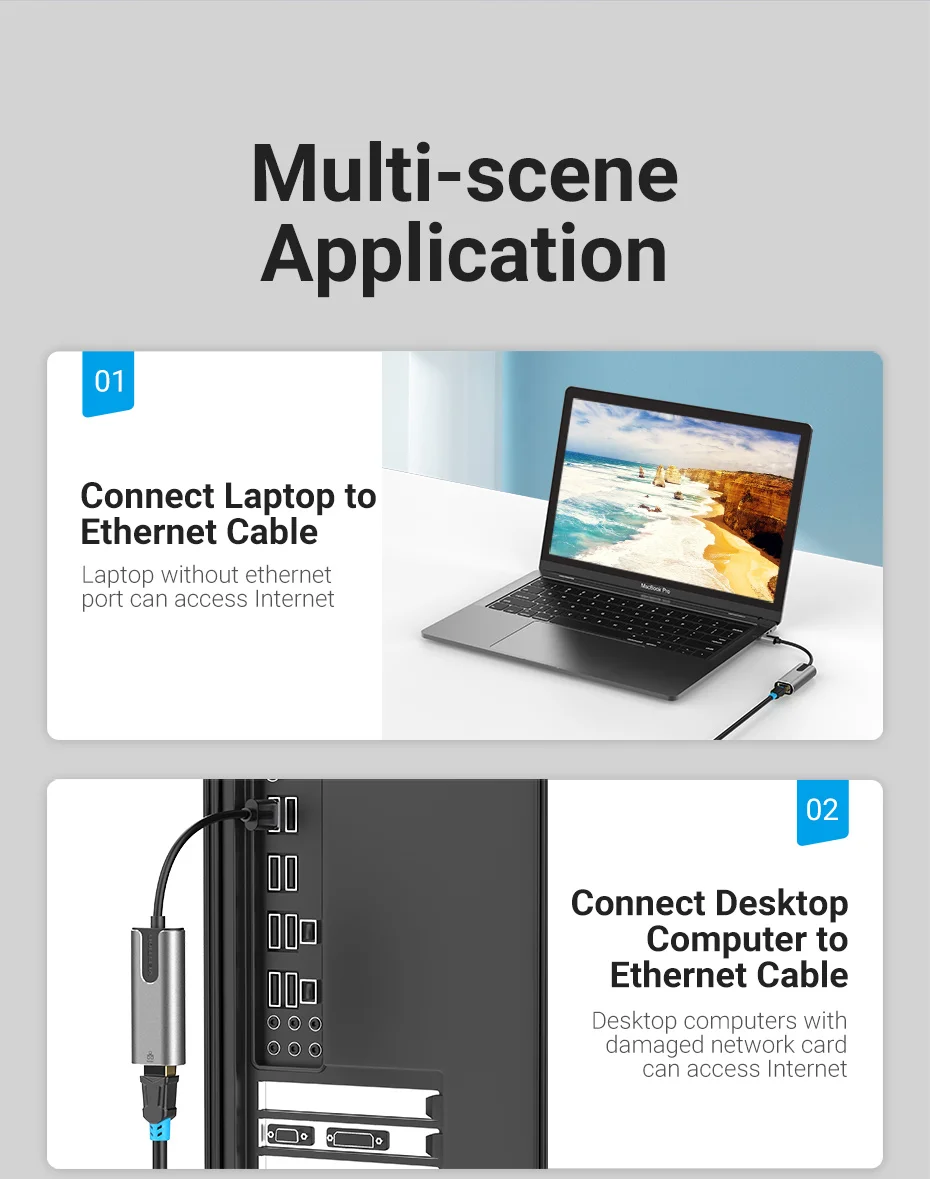 Vention-Adaptador USB Ethernet, tarjeta de red USB HUB a velocidad RJ45, adaptador Lan de 1000M para Windows, Mac, Xaiomi, adaptador USB Ethernet