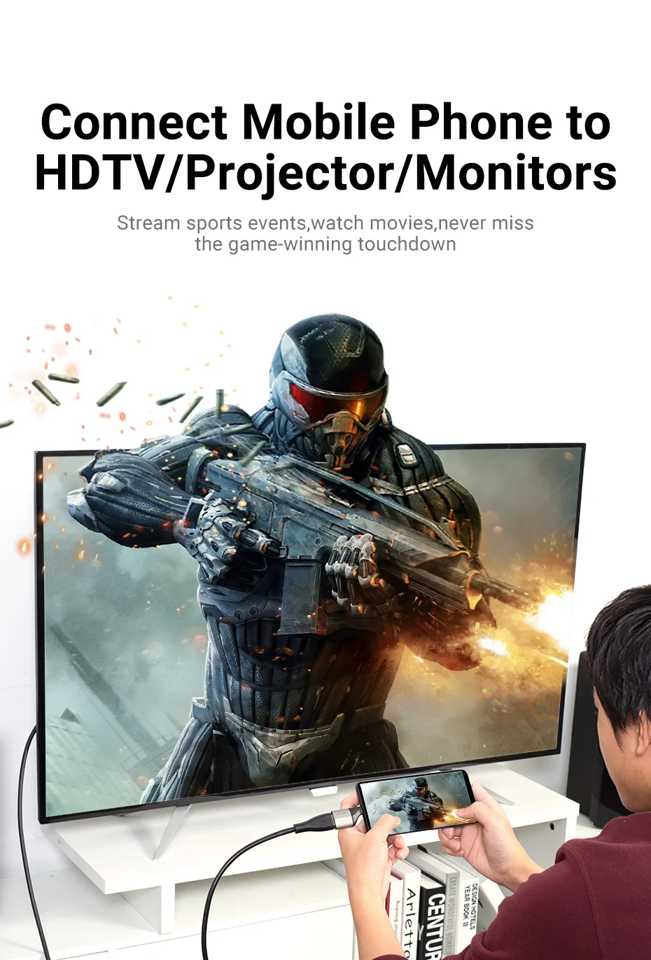 Conecte el teléfono móvil a HDTV/proyector/monitores