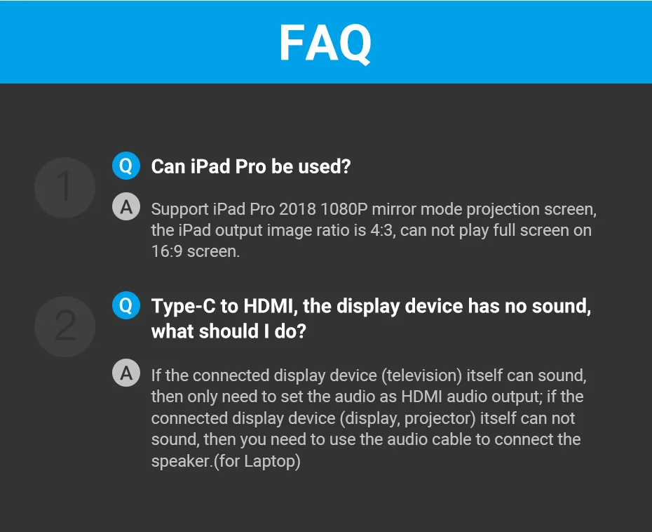 R: Compatible con la pantalla de proyección del modo espejo iPad Pro 2018 1080P, la relación de imagen de salida del iPad es 4:3, no se puede reproducir a pantalla completa en Pantalla 16:9.