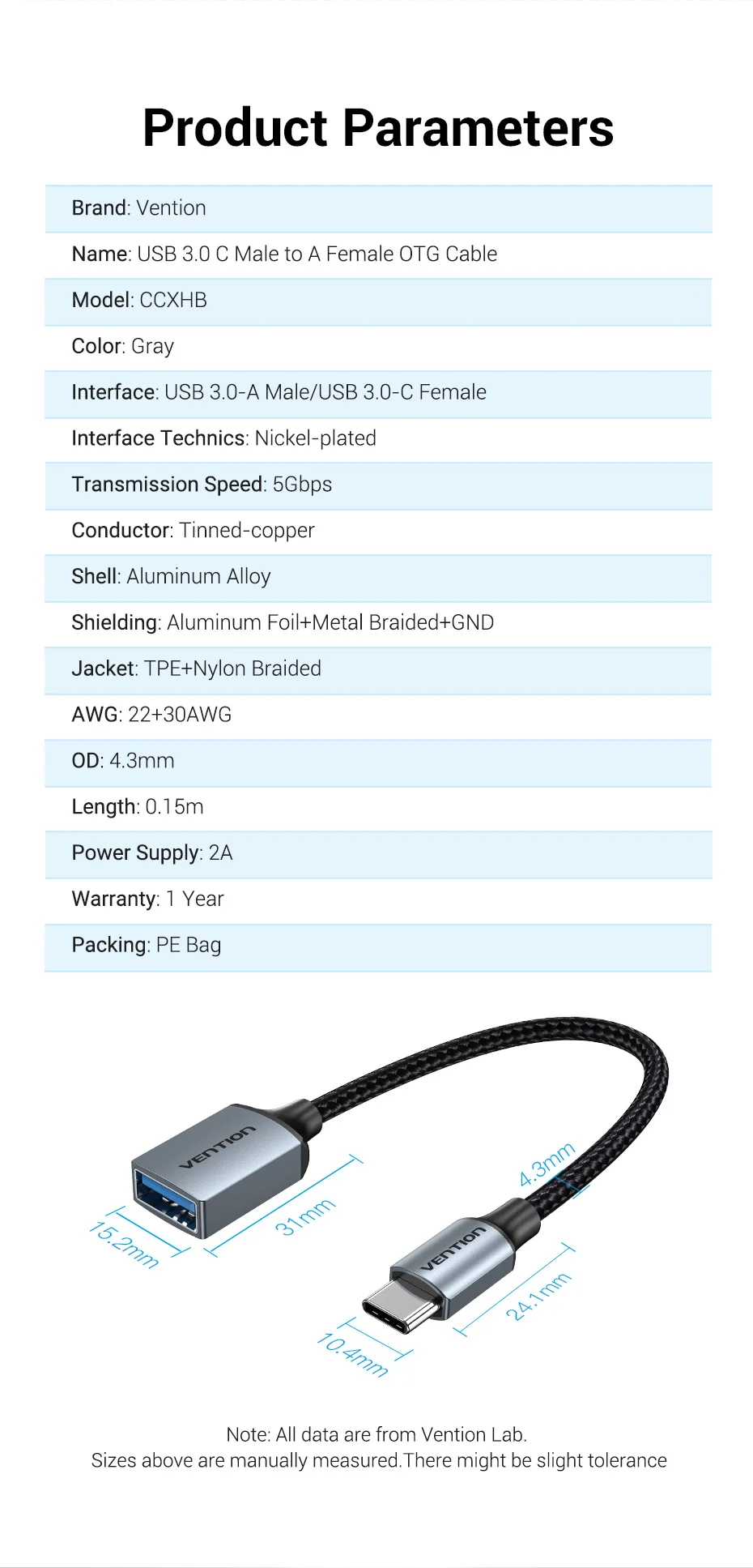 Comprar Vention-Adaptador USB tipo C a USB 3,0 2,0, Cable OTG hembra para MacBook Pro, Xiaomi Mi 9