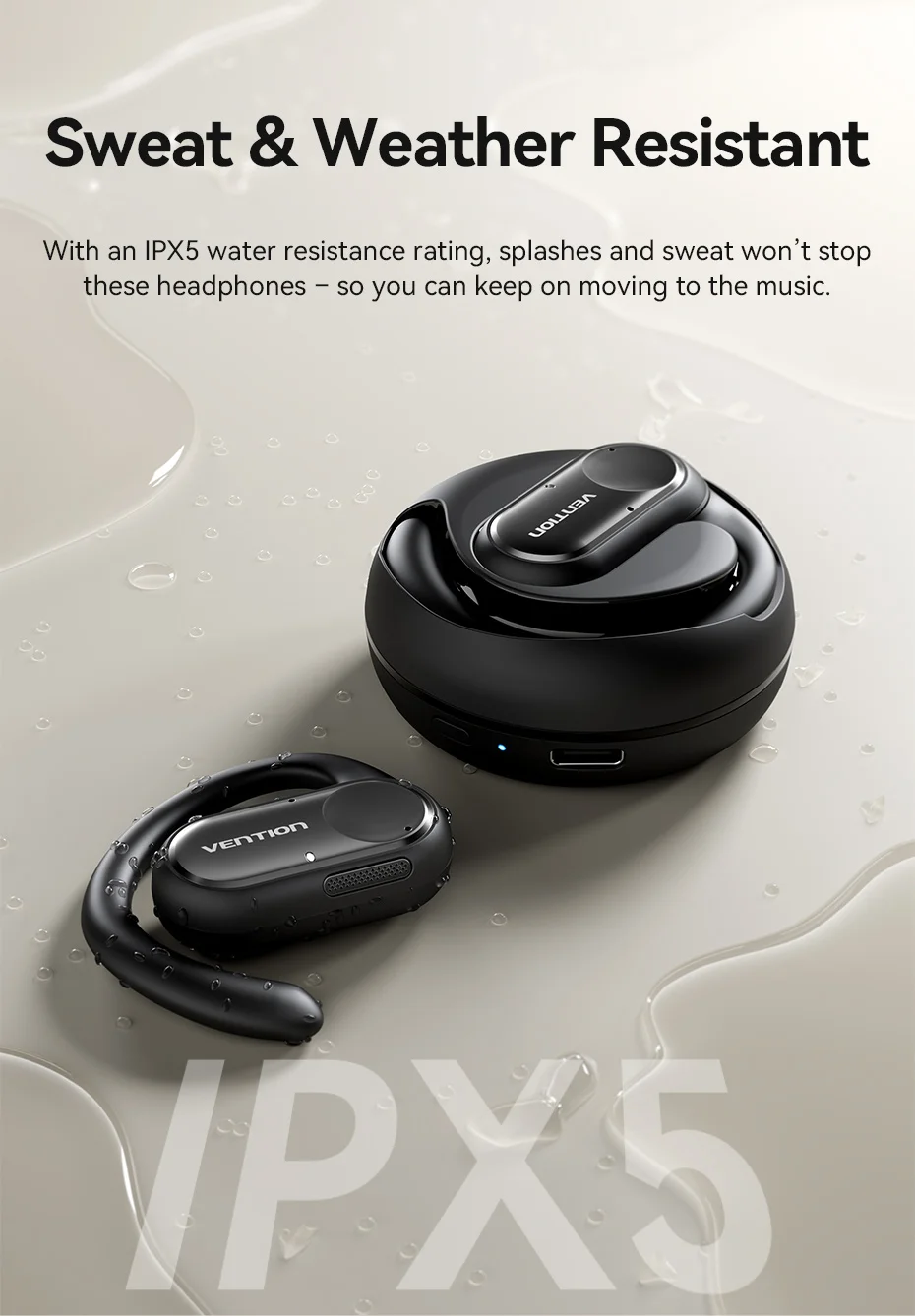 Con una clasificación de resistencia al agua IPX5, las salpicaduras y el sudor no se detendrán