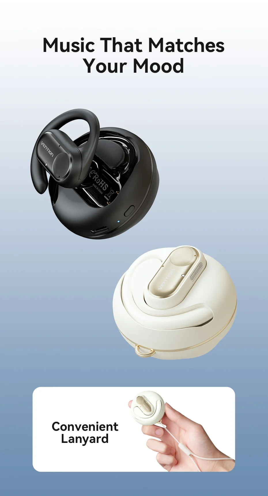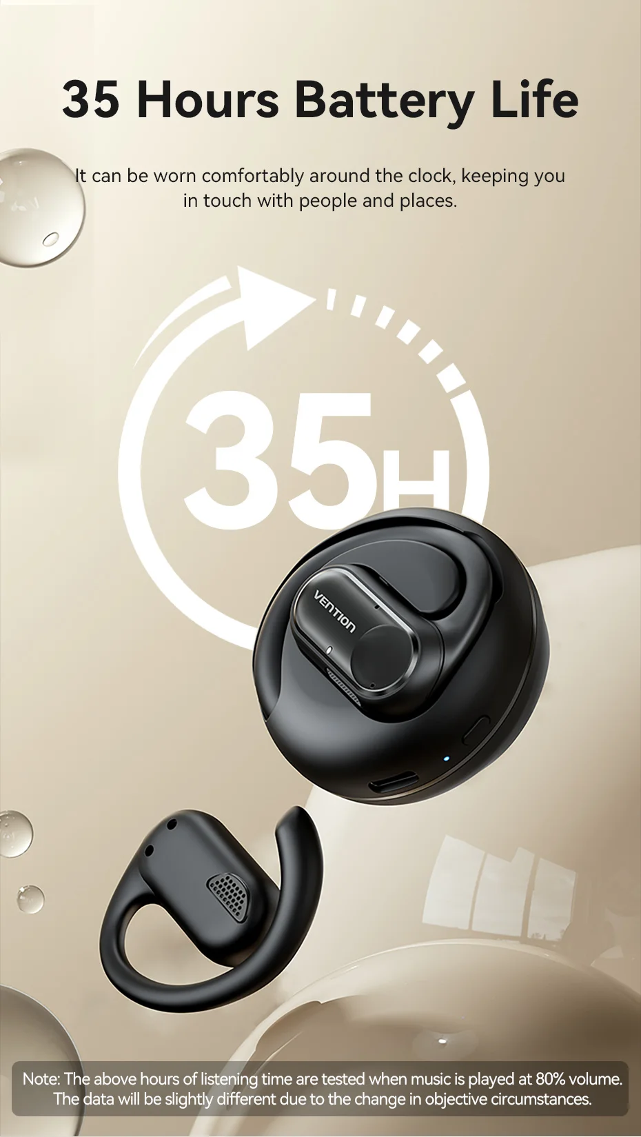 ● Cómodo cordón ● Bluetooth 5,3 ● 35 horas de duración de la batería ● IPX5-rated
