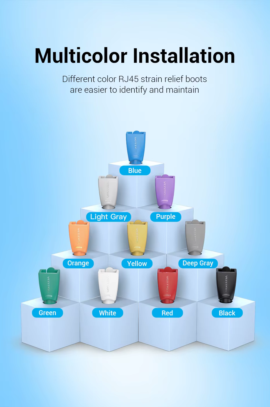 Different color RJ45 strain relief boots are easier to identify and maintain