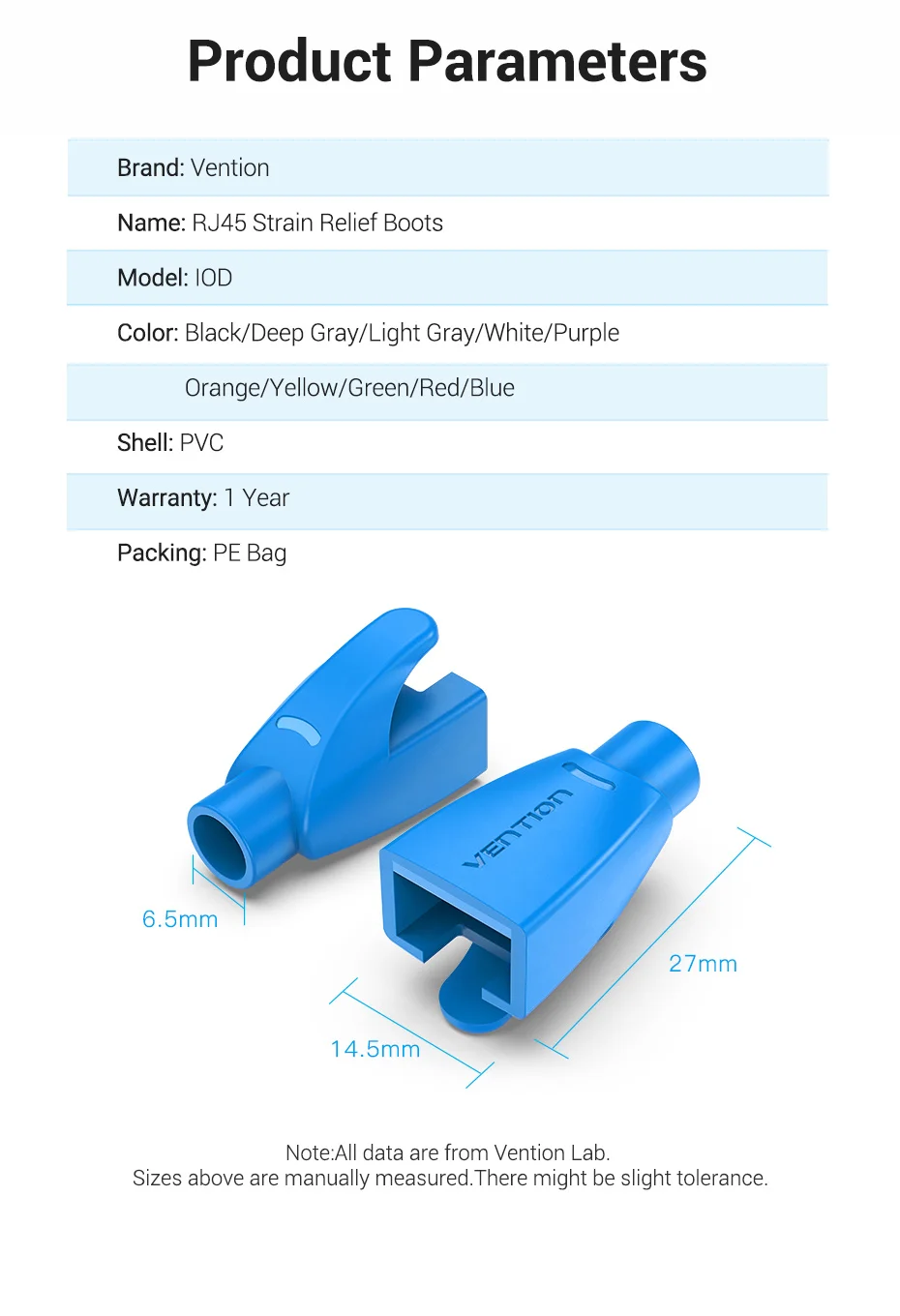 Comprar Vention-Botas de alivio de tensión RJ45, conector Ethernet RJ45, cubierta de enchufe, 50 Uds., tapa de botas RJ45 para Cable Ethernet CAT5E/6