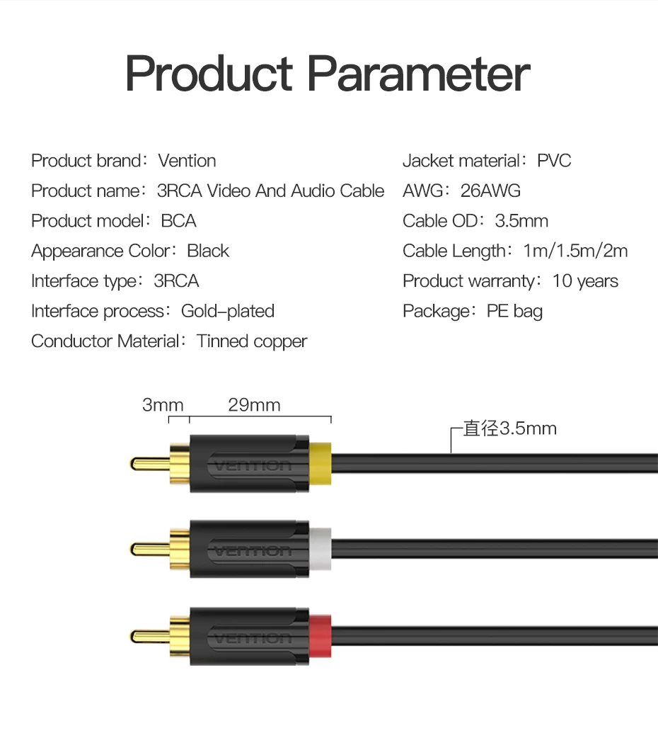 Comprar Vention Cable 3RCA a 3 RCA Audio Video Cable AV macho a macho chapado en oro para STB DVD TV VCD Blueplayer Cable amplificador conector RCA