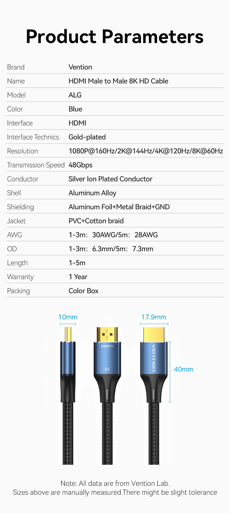 Comprar Vention-Cable 8K Compatible con HDMI para PS5, Xiaomi TV Box, HUB USB, Ultra alta velocidad, certificado, 8K @ 60Hz, 48Gbps, eARC, Dolby Vision