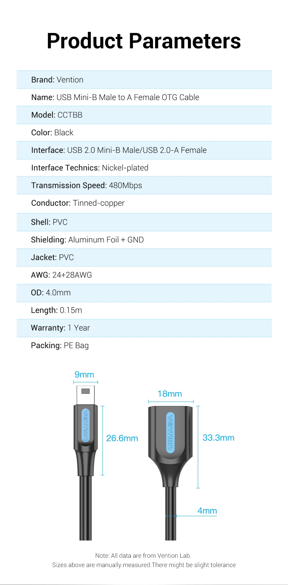 Comprar Vention-Cable adaptador Mini USB OTG, macho a USB 2,0 hembra para tableta Samsung Macbook Pro, adaptador USB OTG de 0,1 m, 0,25 m, nuevo