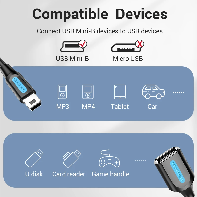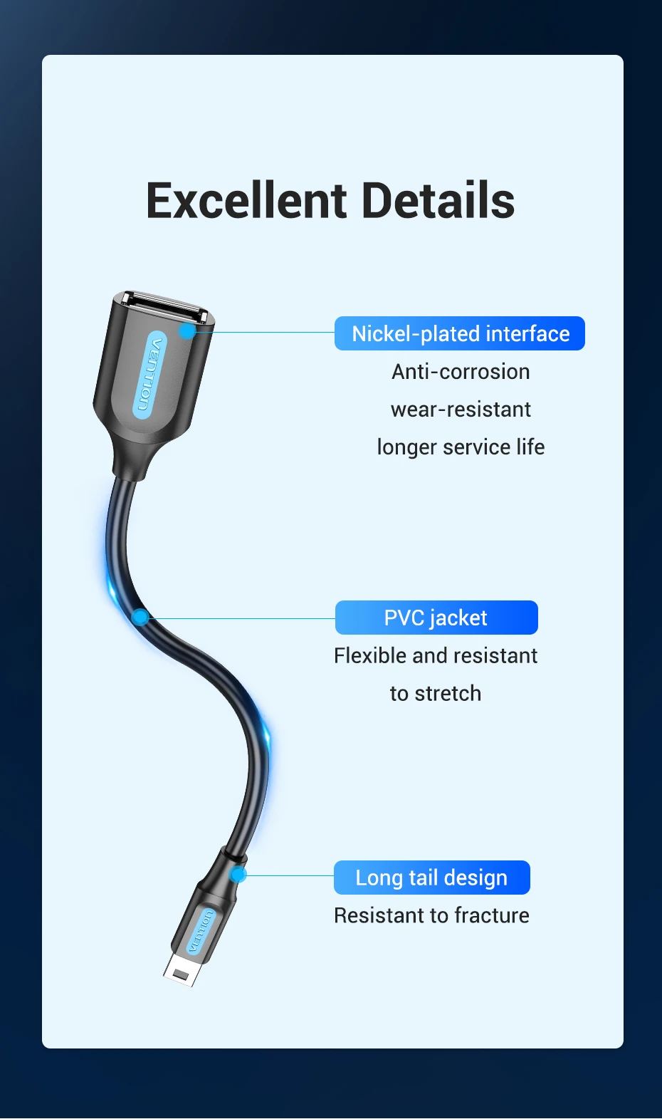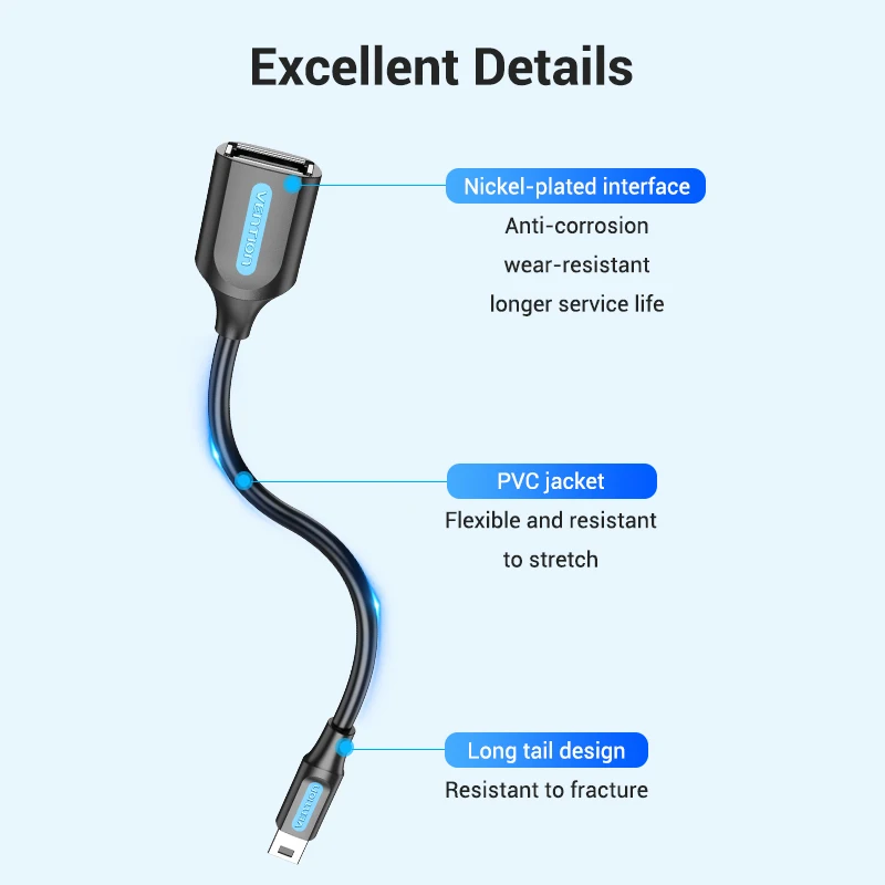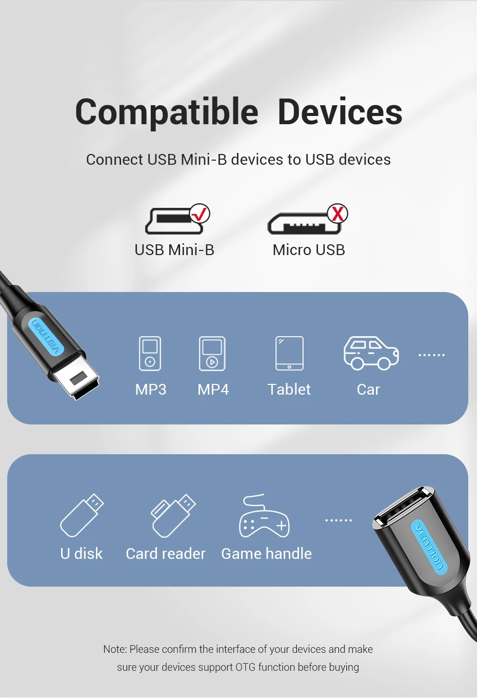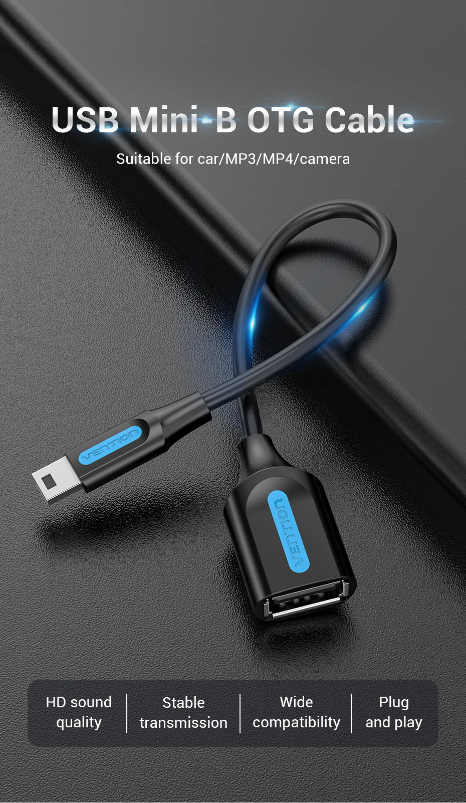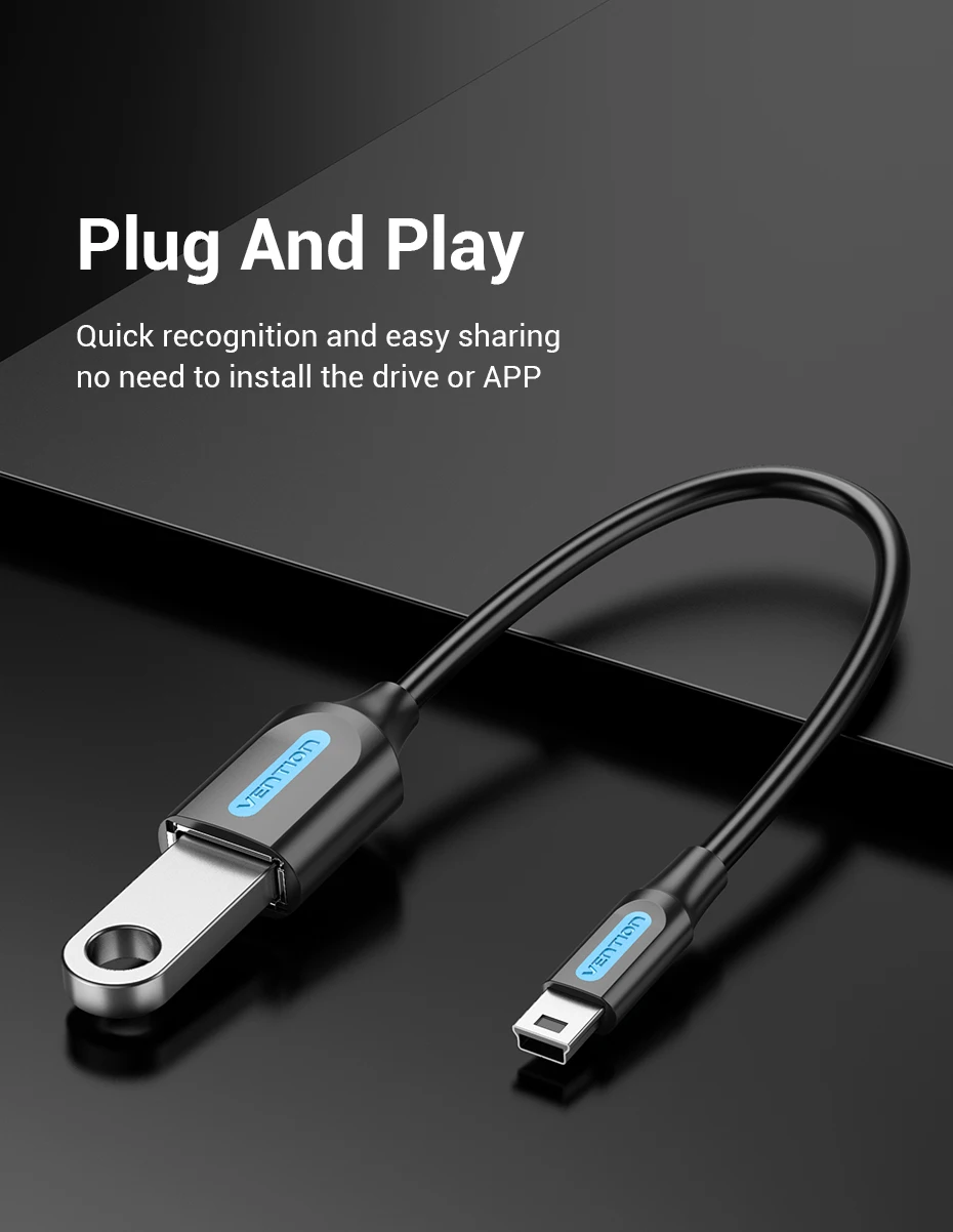 Comprar Vention-Cable adaptador Mini USB OTG, macho a USB 2,0 hembra para tableta Samsung Macbook Pro, adaptador USB OTG de 0,1 m, 0,25 m, nuevo