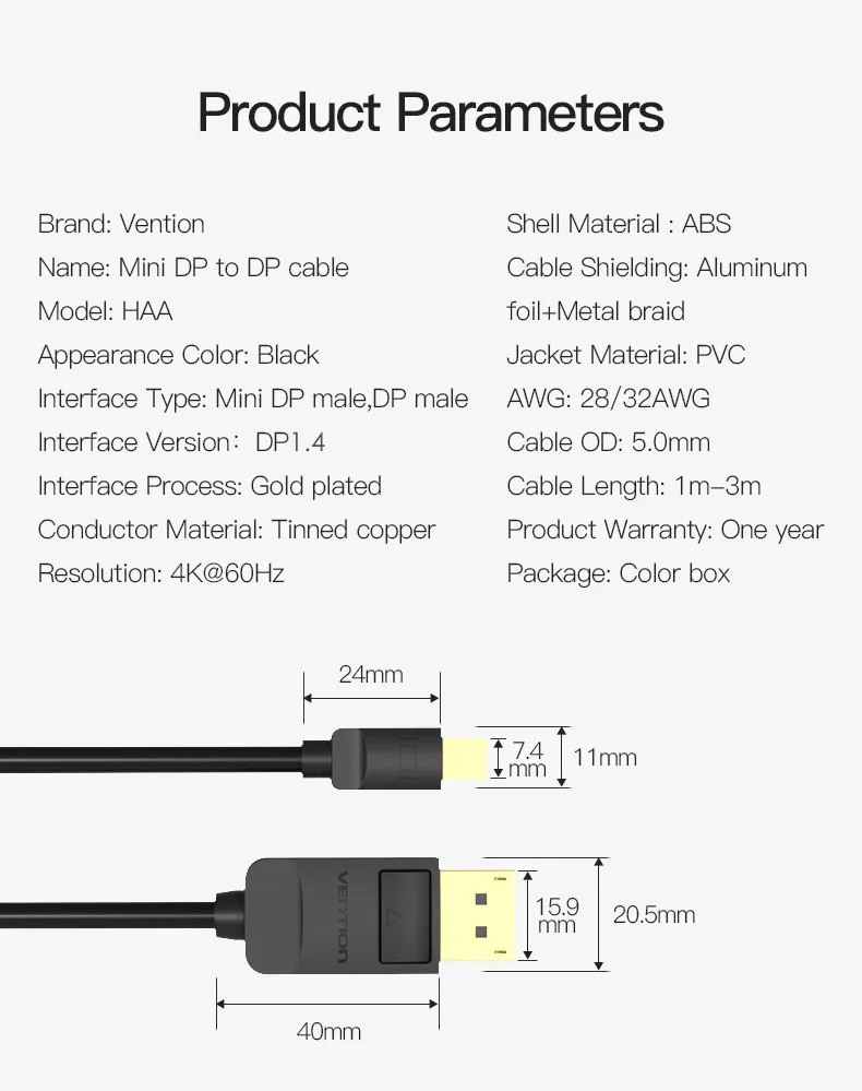 Comprar Vention-Cable adaptador Thunderbolt Mini displayport a Displayport, adaptador de Cable DP a DP, convertidor de TV de ordenador para Macbook Pro Air