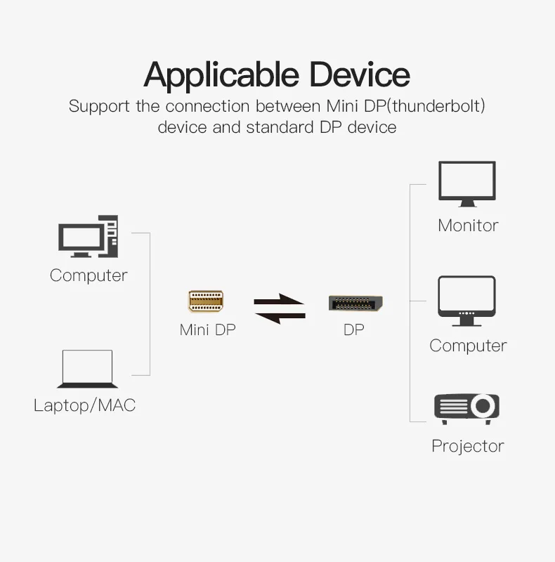 Comprar Vention-Cable adaptador Thunderbolt Mini displayport a Displayport, Adaptador de Mini DP a DP, convertidor de TV de ordenador para Macbook Pro Air