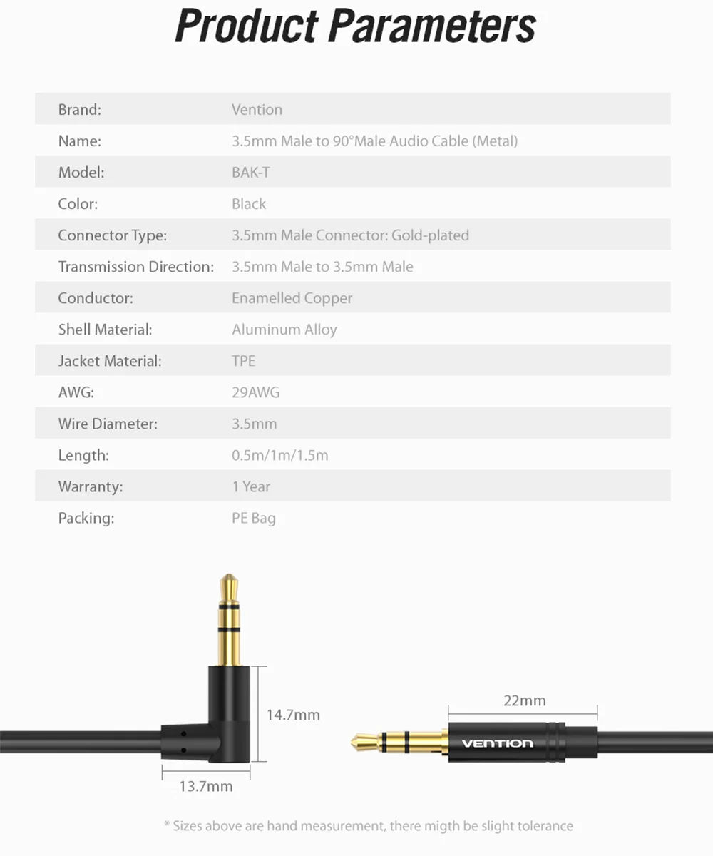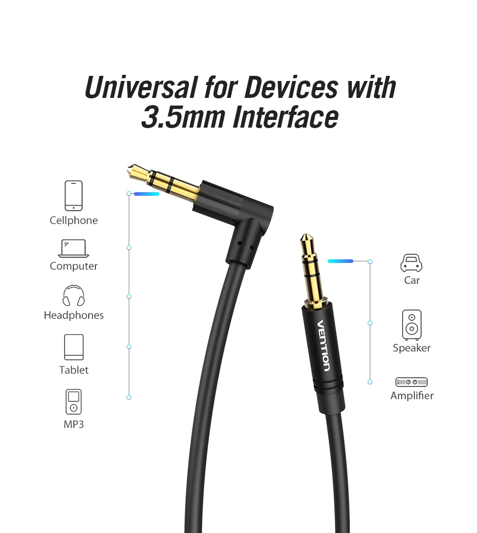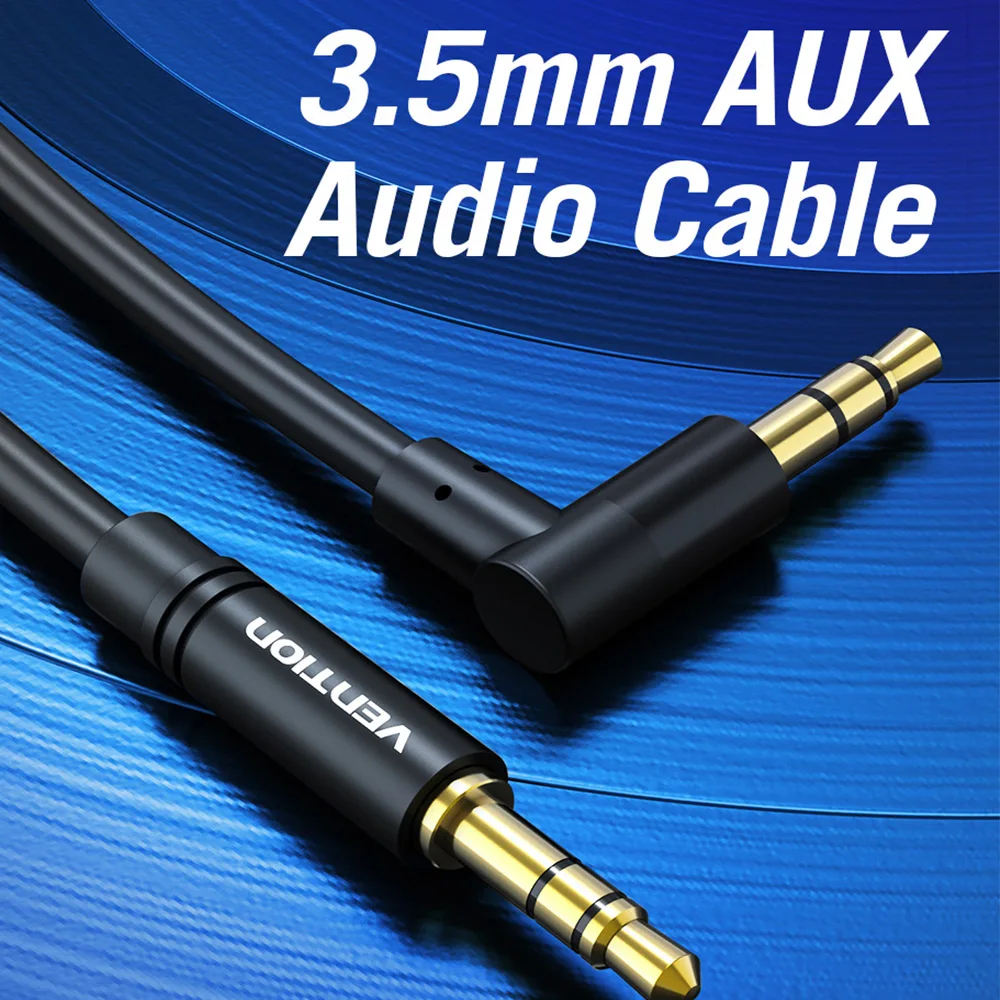 Comprar Vention Cable de Audio con conector de 3,5mm, Cable de Audio macho a macho de 3,5, Cable auxiliar de ángulo recto de 90 grados para auriculares de coche, Cable auxiliar MP3/4 de 5m