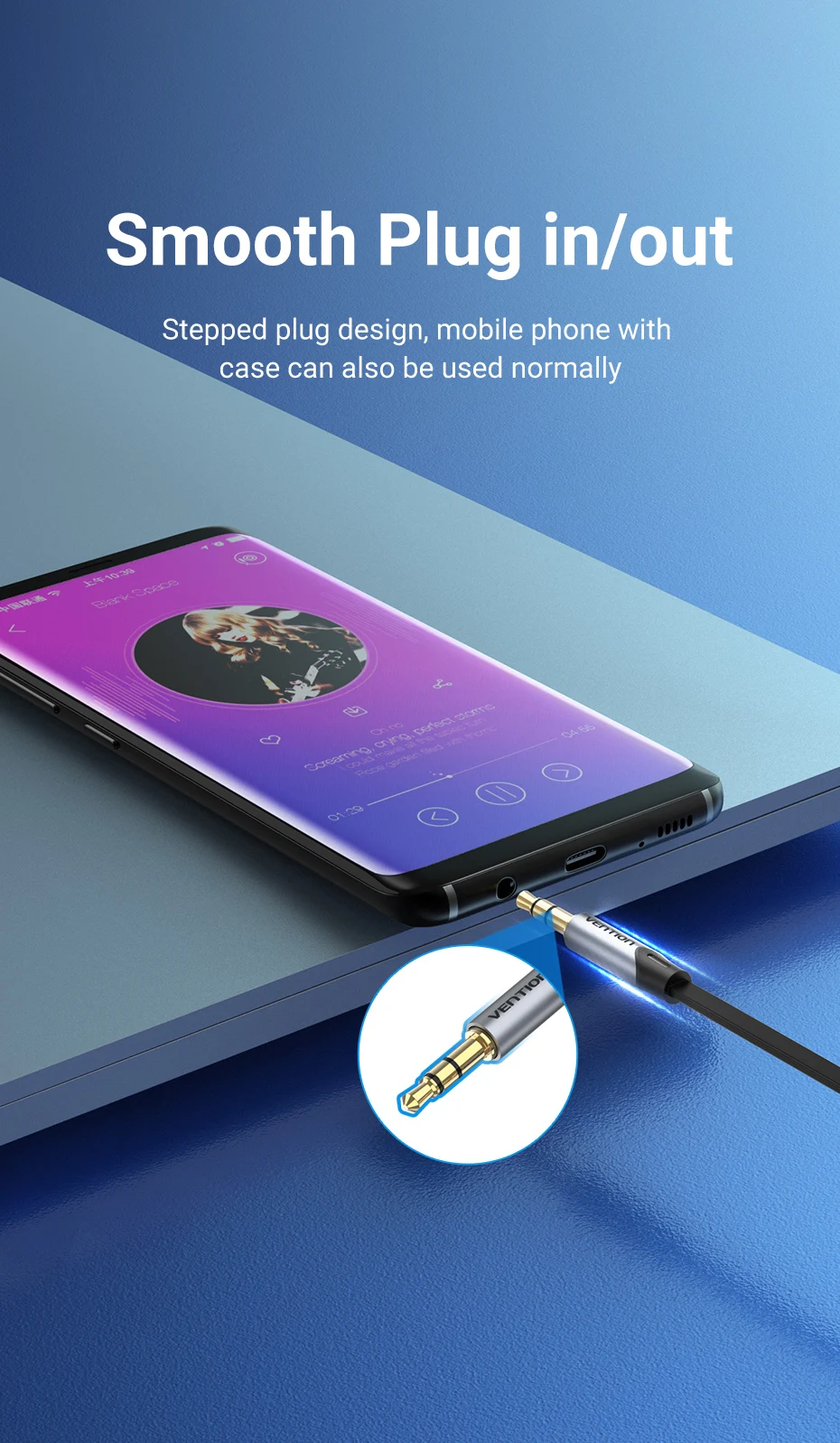 Vention Cable de Audio con conector de 3,5mm, Cable de Audio macho a macho de 3,5, Cable auxiliar de ángulo recto de 90 grados para auriculares de coche, Cable auxiliar MP3/4 de 5m
