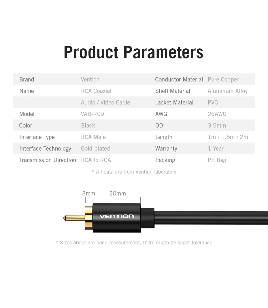Comprar Vention-Cable de Audio estéreo RCA a RCA macho a macho, Cable Coaxial de 1m, 1,5 m, 2m, para amplificador de TV, macho a macho