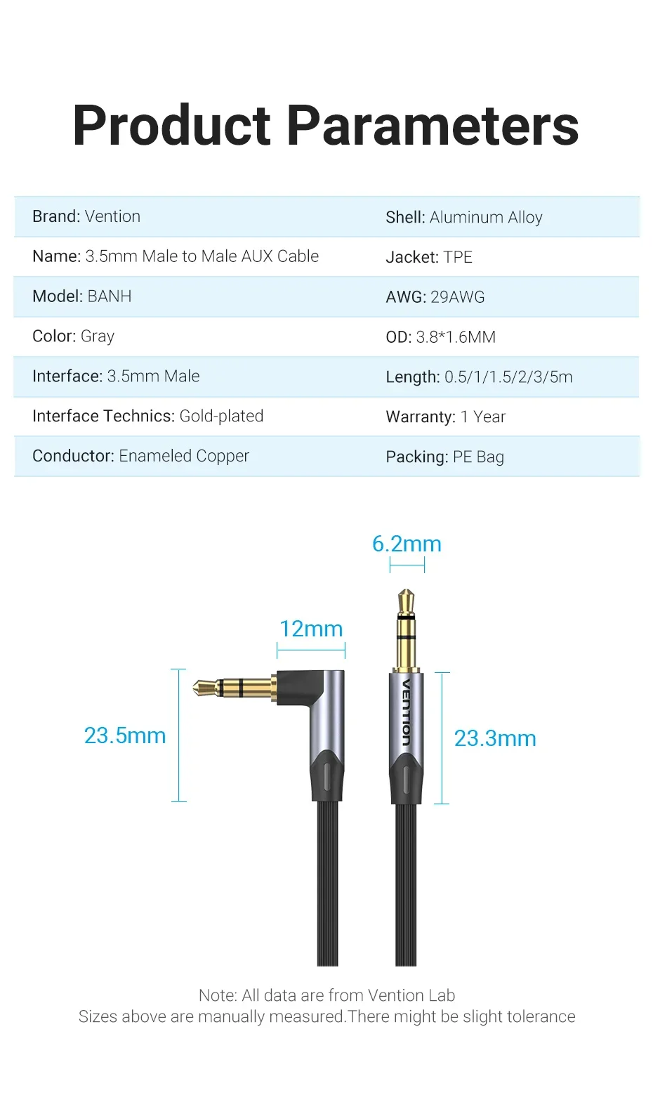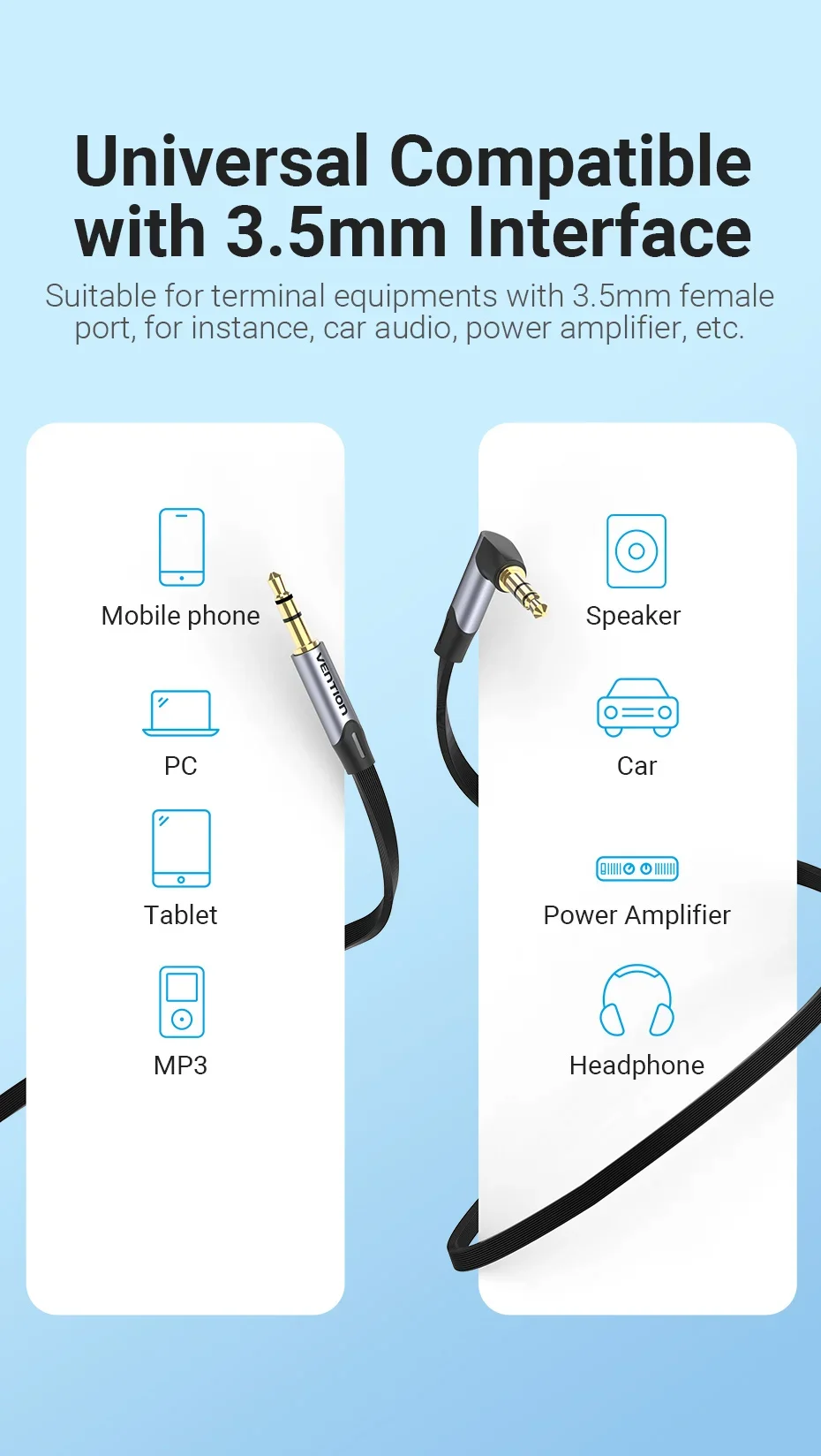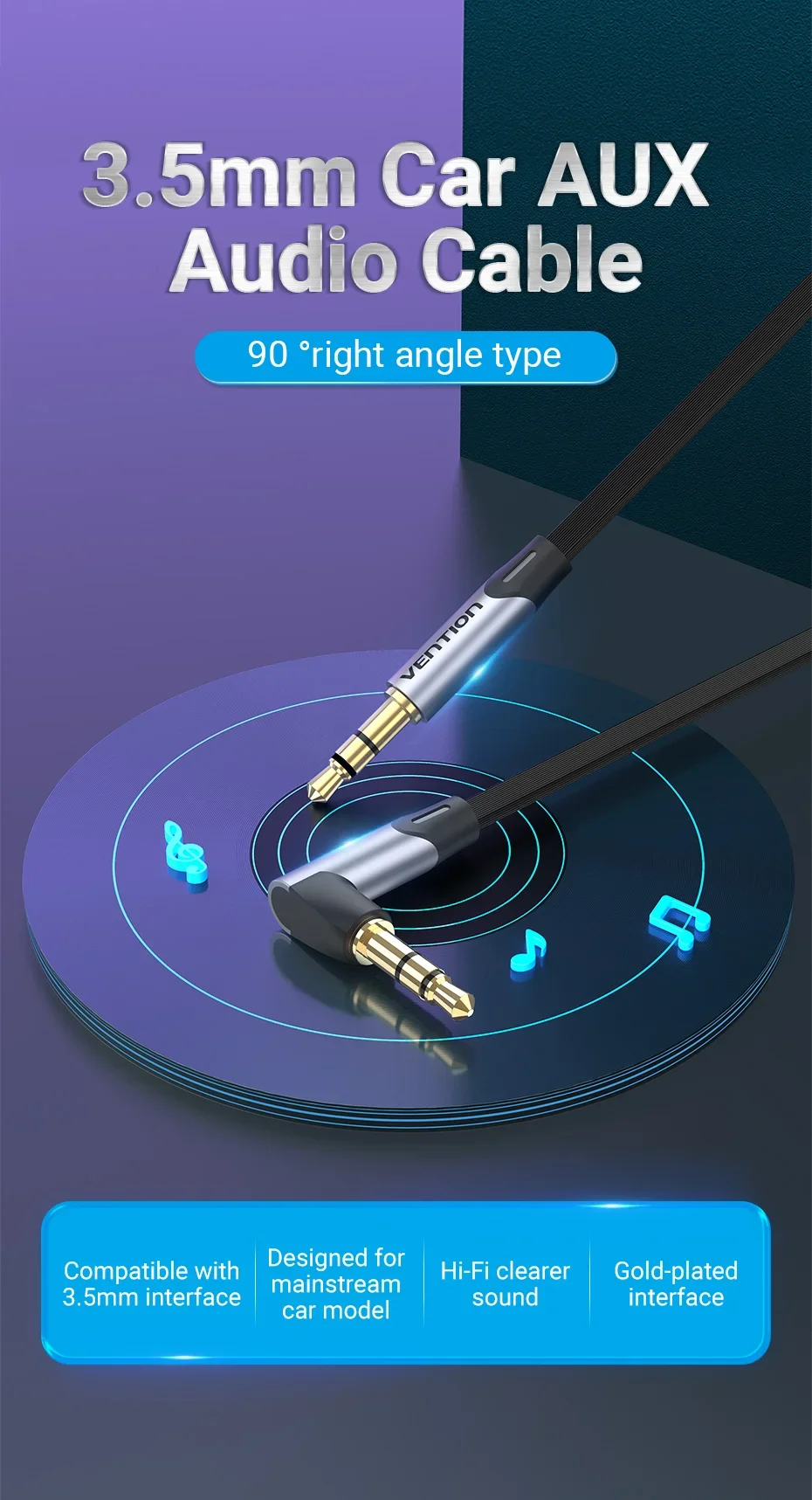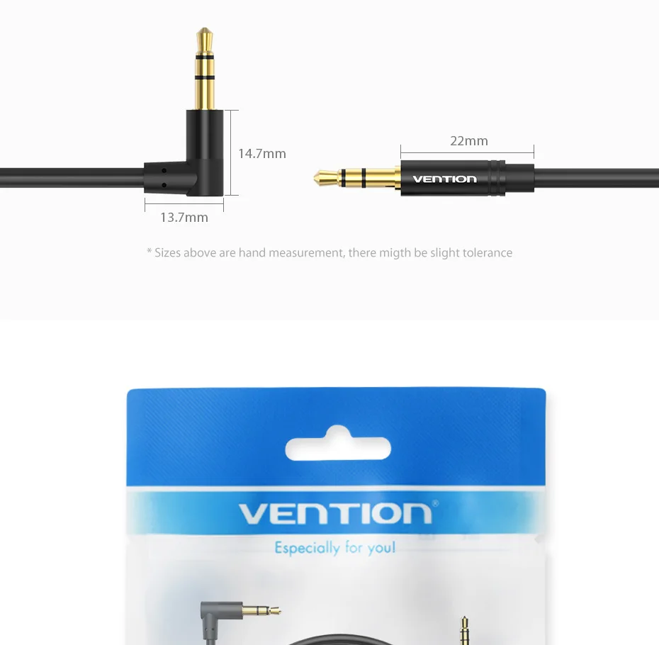 Comprar Vention-Cable de Audio Jack de 3,5mm, conector macho a macho de 3,5, Cable auxiliar de 90 grados de ángulo recto para auriculares de coche, MP3/4, en oferta