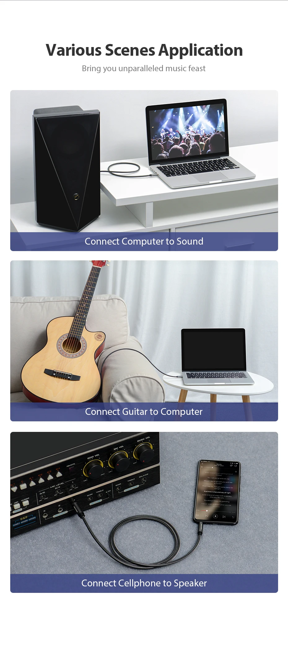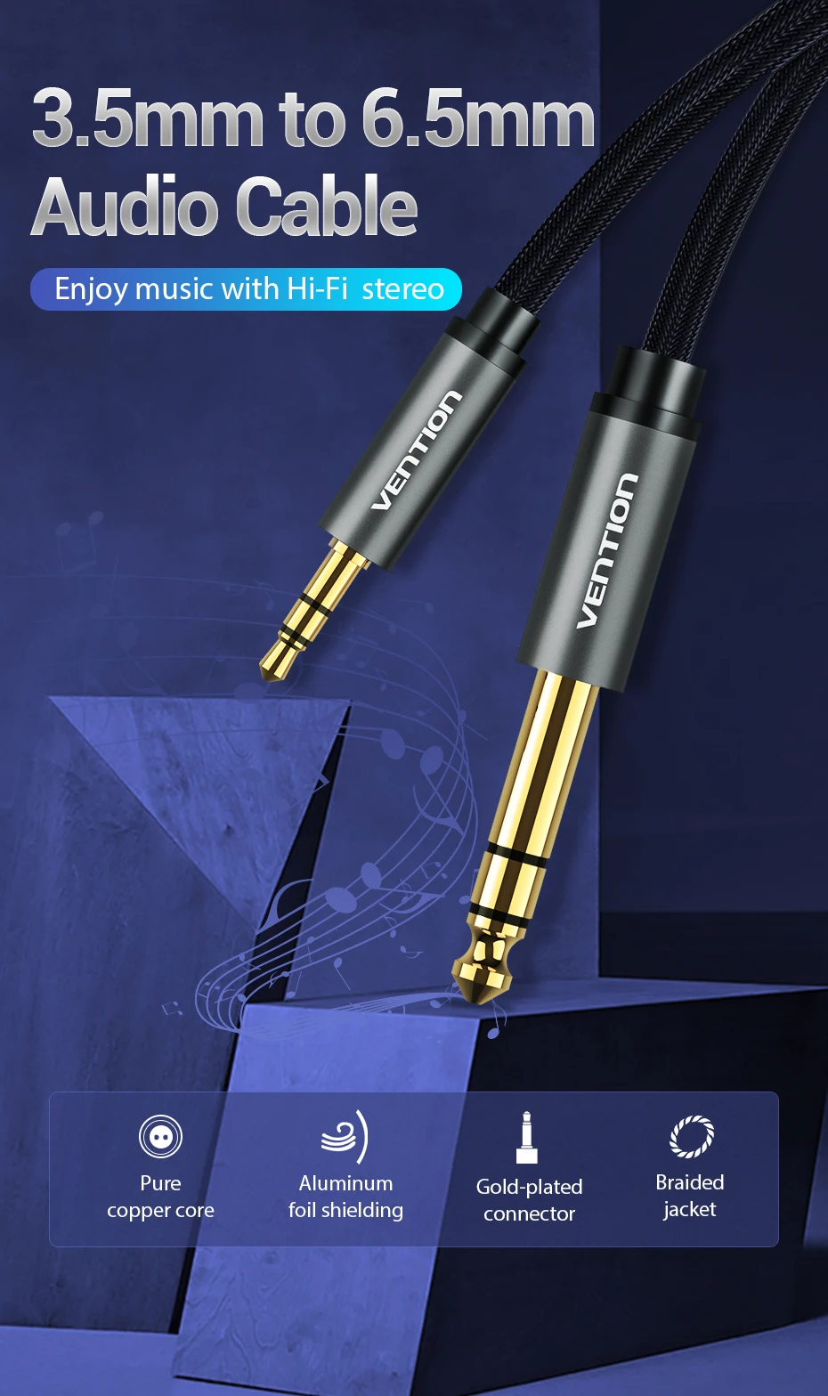 Comprar Vention Cable Aux adaptador macho a macho de 3,5mm a 6,35mm para amplificador mezclador conector 3,5 chapado en oro a conector 6,5 3m 5m 10m Aux Cabo