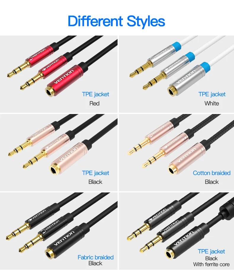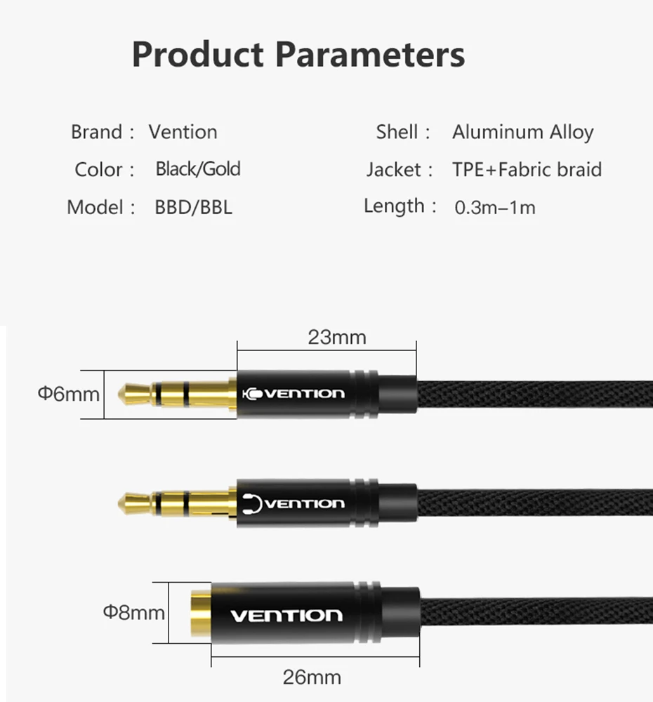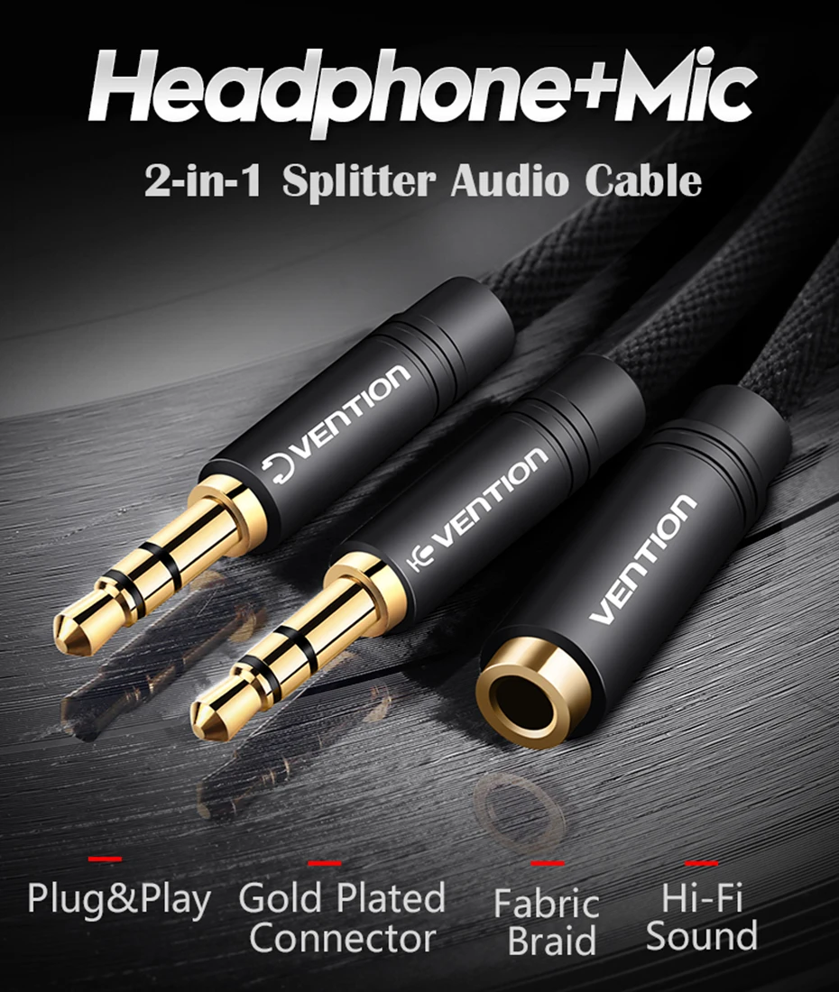 Comprar Vention-Cable auxiliar de 3,5mm, divisor de Audio Y, conector hembra 3,5 a macho Dual, divisor de auriculares para ordenador portátil