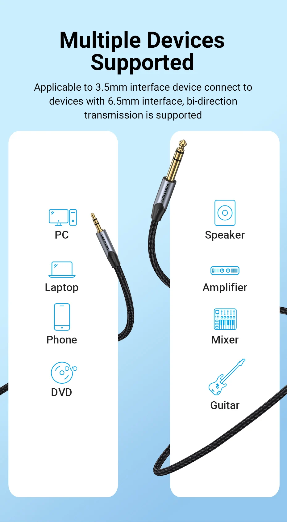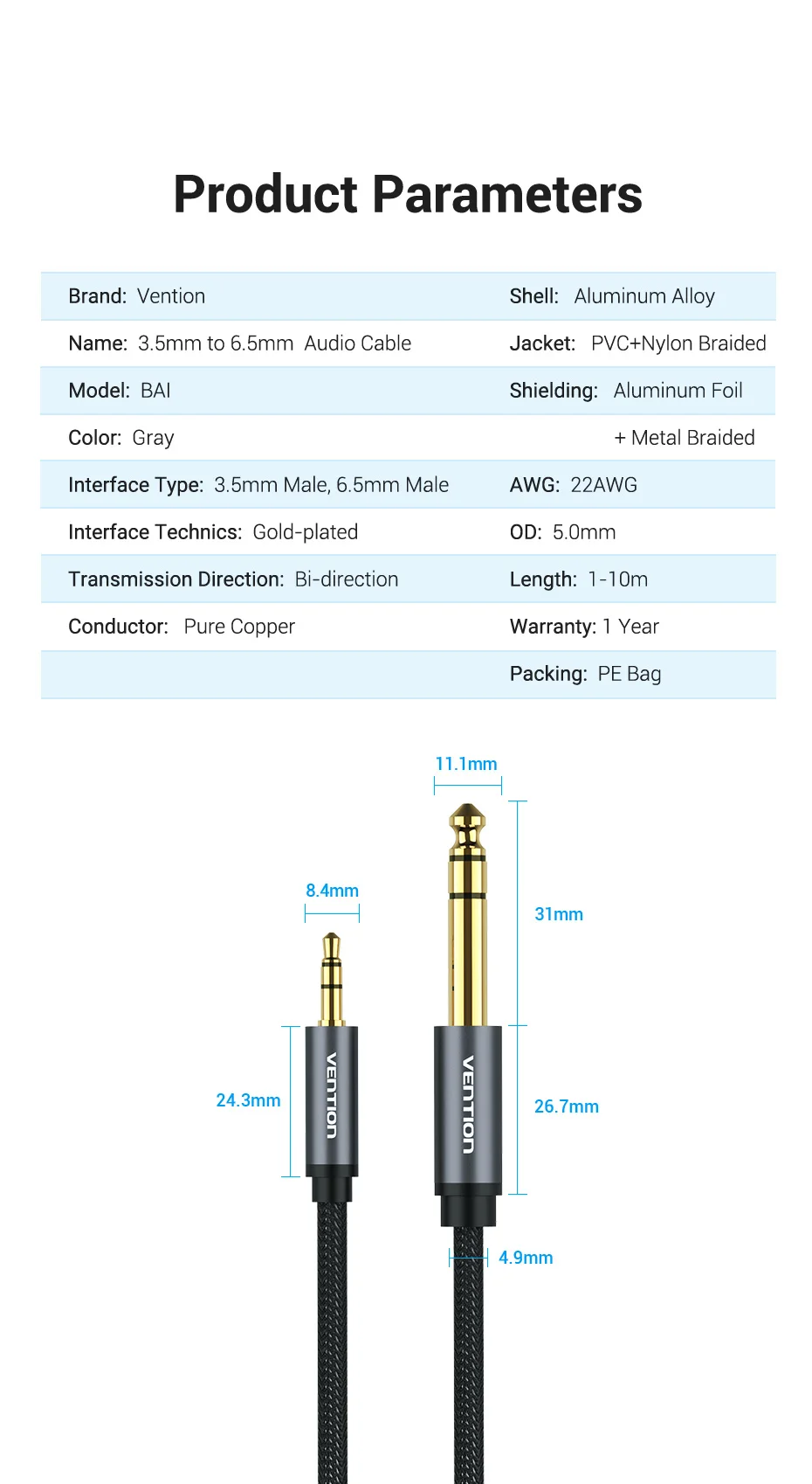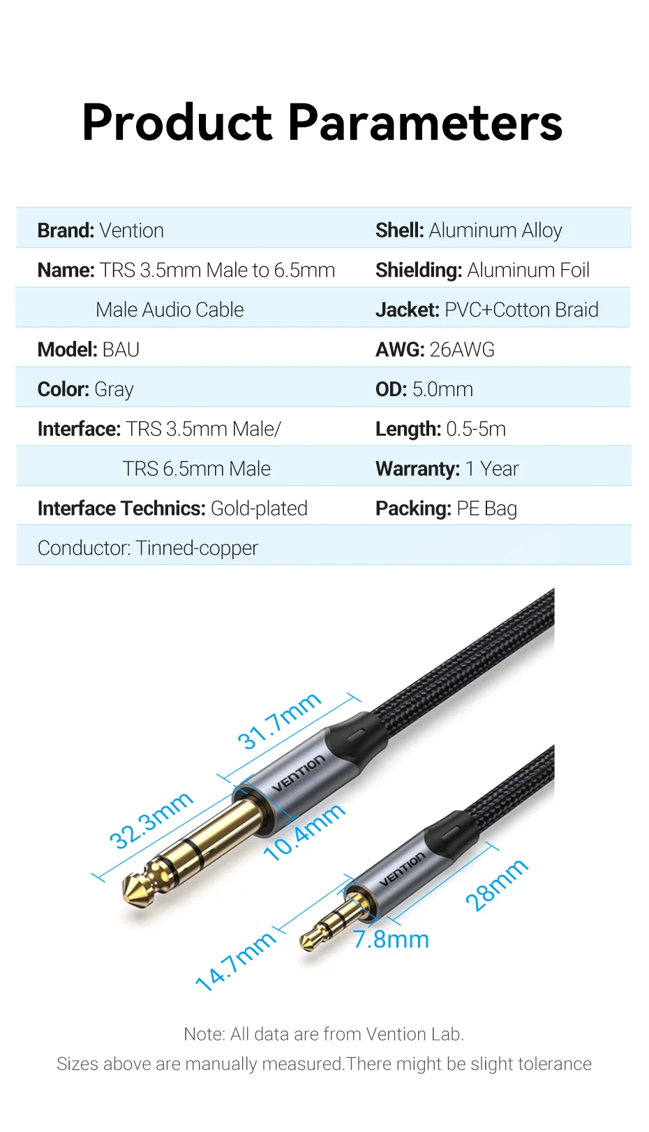 Comprar Vention Cable auxiliar adaptador de 3,5mm a 6,35mm para amplificador mezclador chapado en oro conector 3,5 a conector 6,5 0,5 m 3m 5m Aux Cabo macho a macho