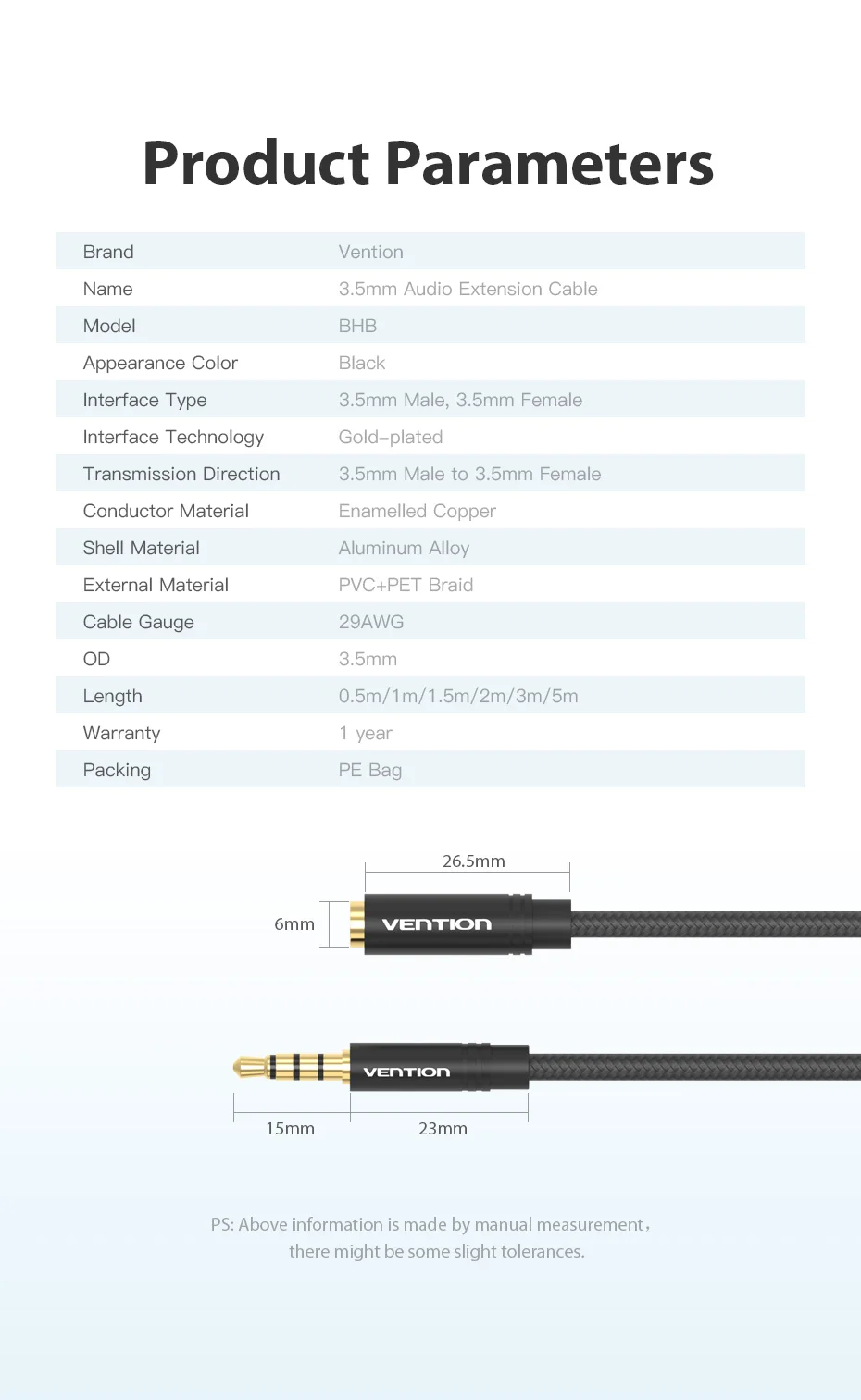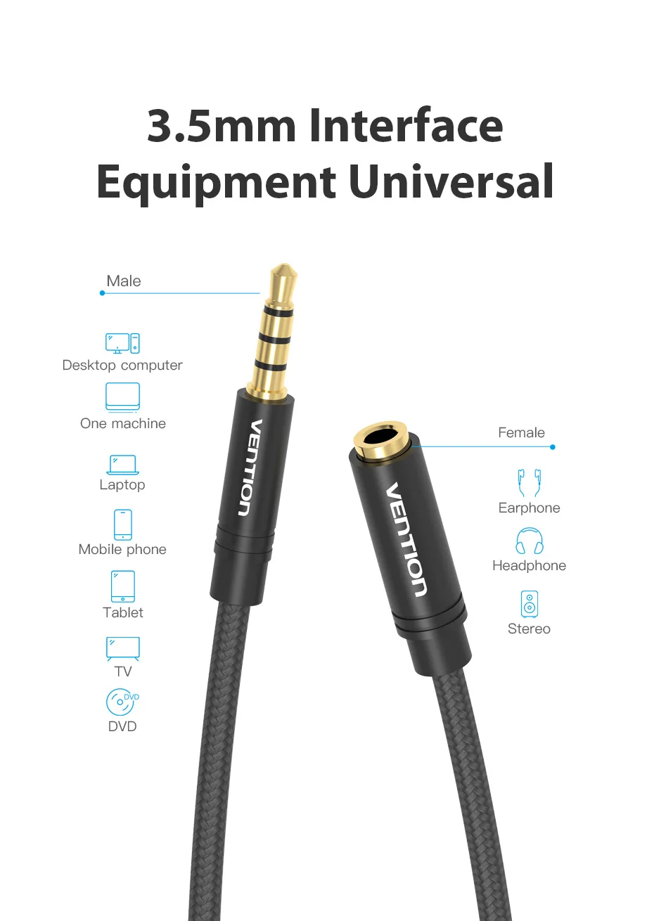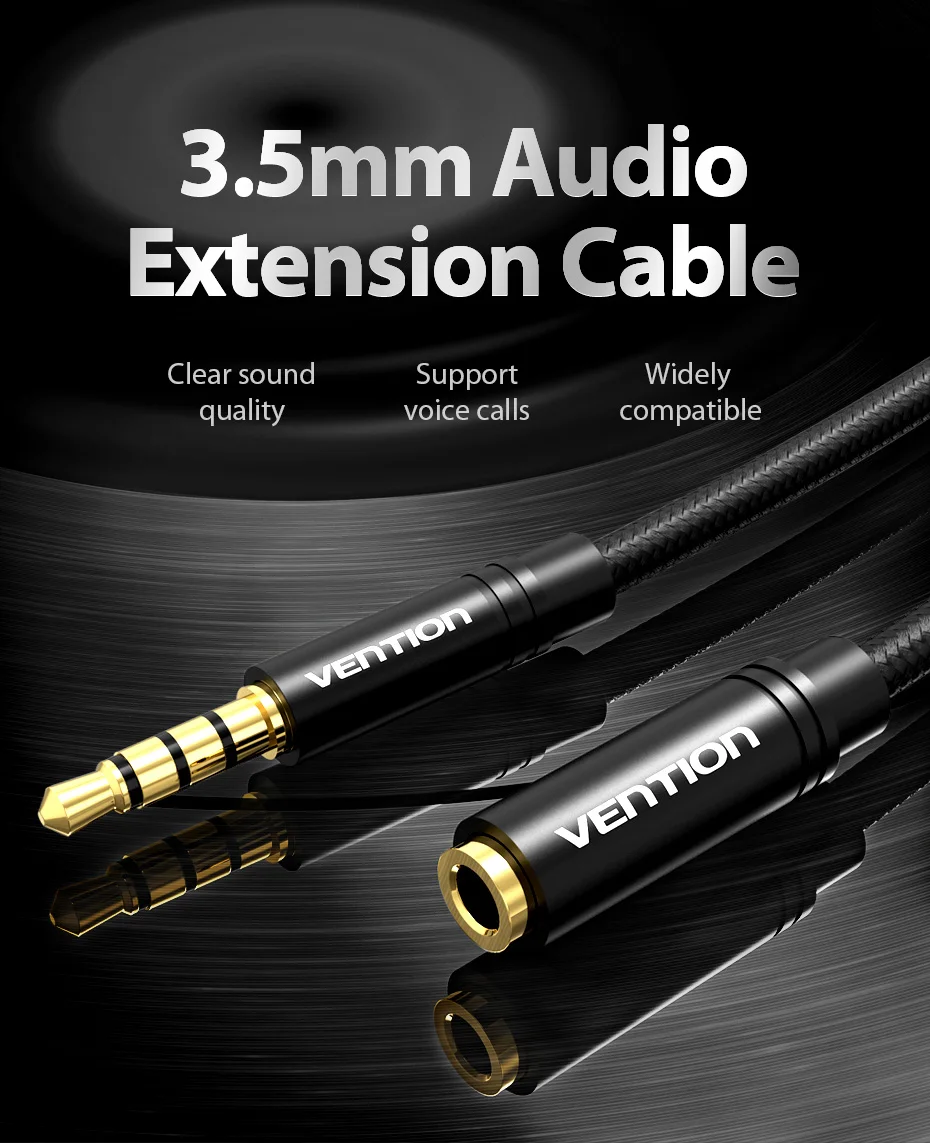 Vention Cable auxiliar Jack Cable de extensión de Audio de 3,5mm para Huawei P20 estéreo 3,5 Jack adaptador de Cable auxiliar para auriculares Xiaomi Samsung