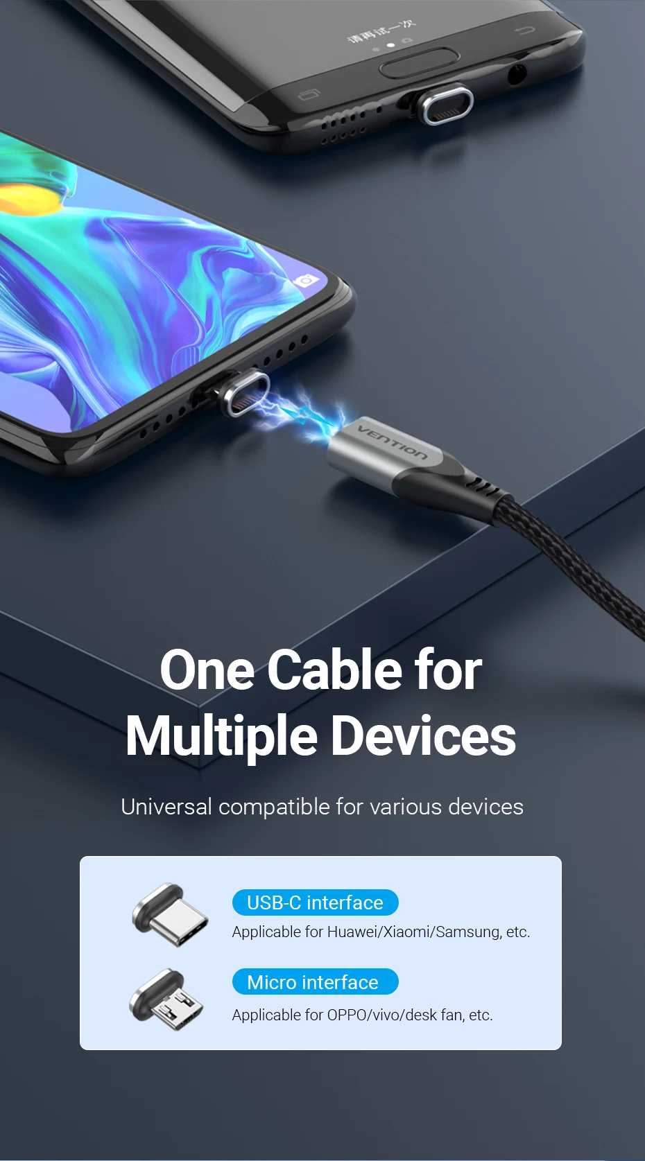 Comprar Vention Cable de carga magnética 3A Cable Micro USB de carga rápida imán USB tipo C Cable de datos de carga para teléfono móvil Cable USB