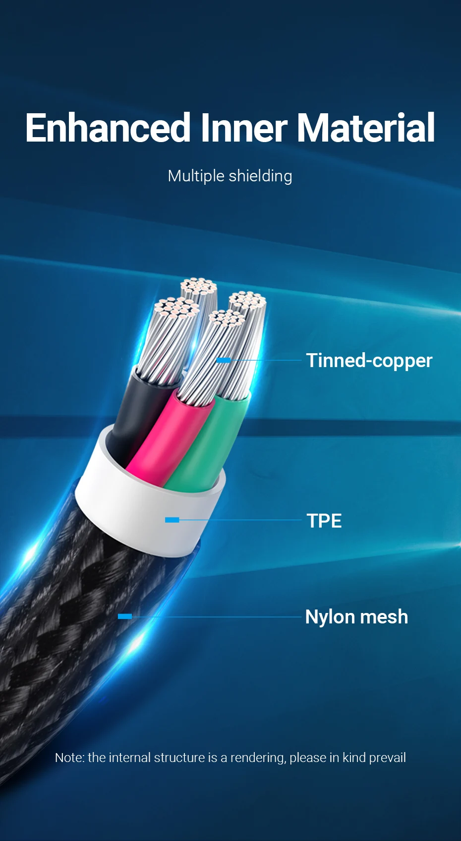 【Carga y sincronización rápidas 3A】Nuestro cable es compatible con Qualcomm QC 3.0 con una corriente de salida máxima de 3A.Y velocidad de sincronización de datos de hasta 480 MB/s.