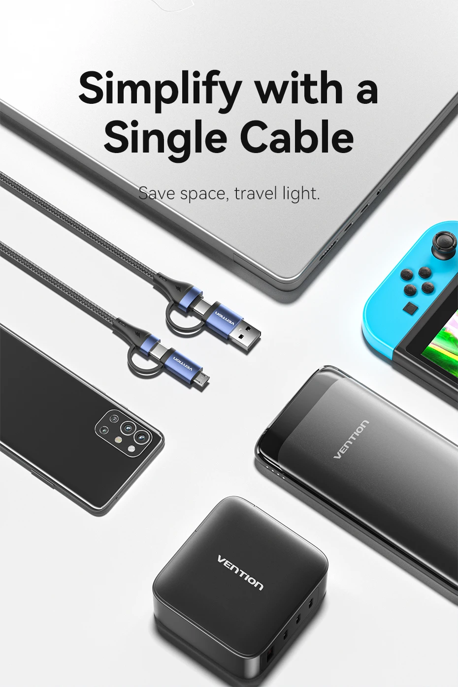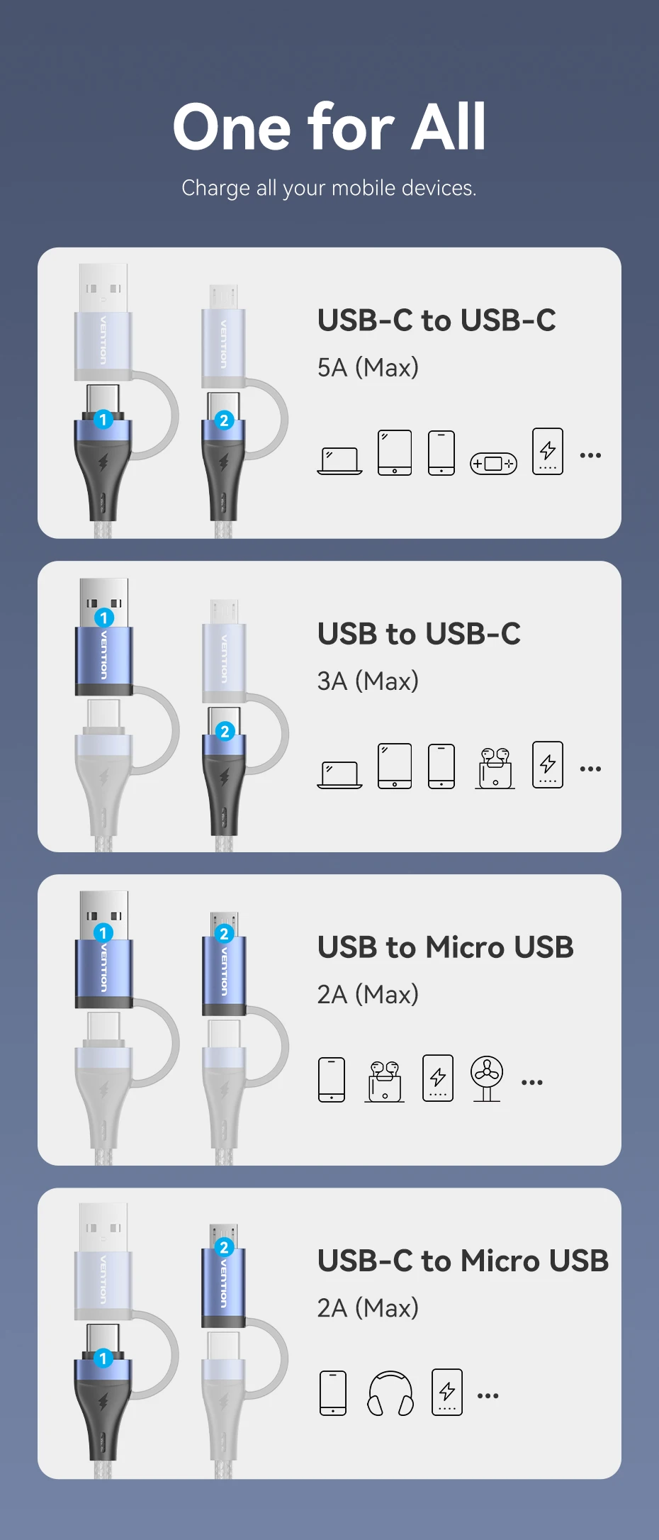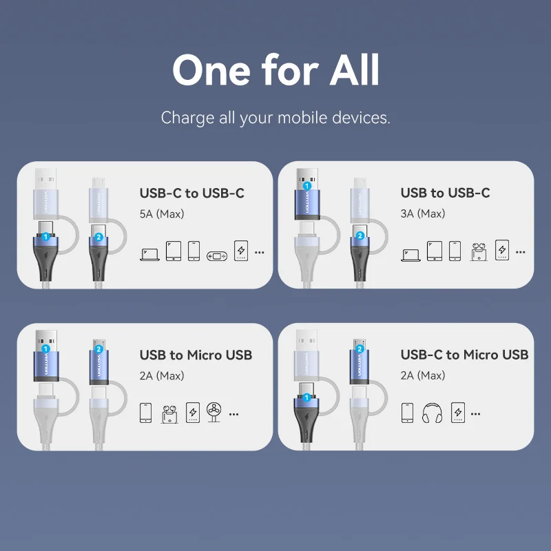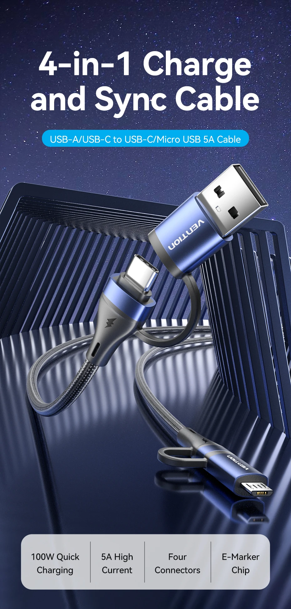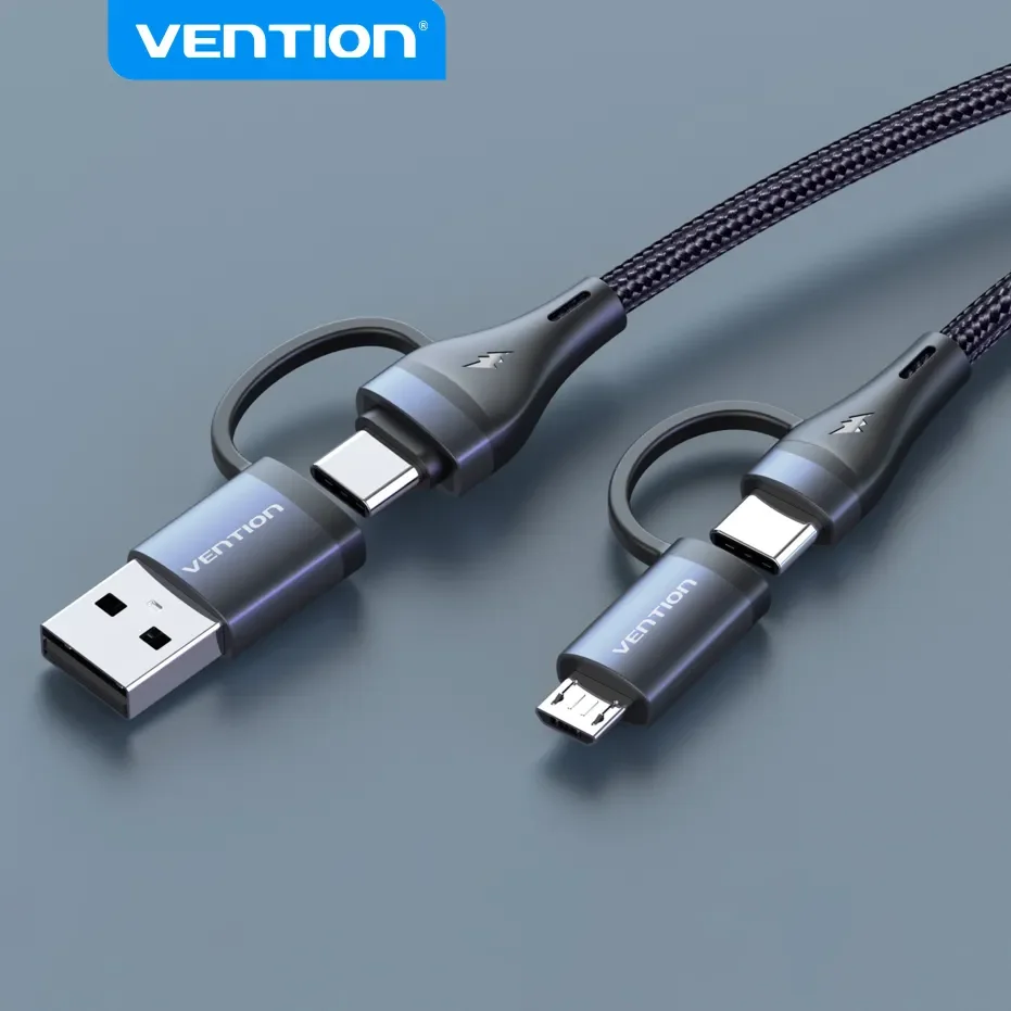 Comprar Vention-Cable de carga rápida 4 en 1 para teléfono móvil, conector USB tipo C de 100W, PD, A Micro USB, para POCO, Xiaomi, Samsung