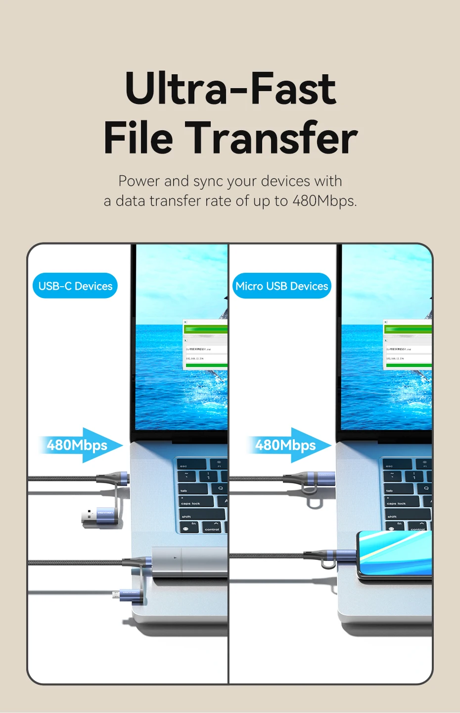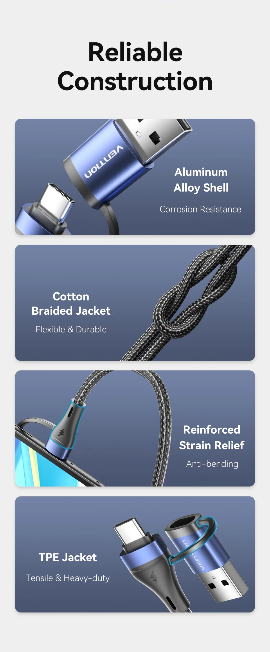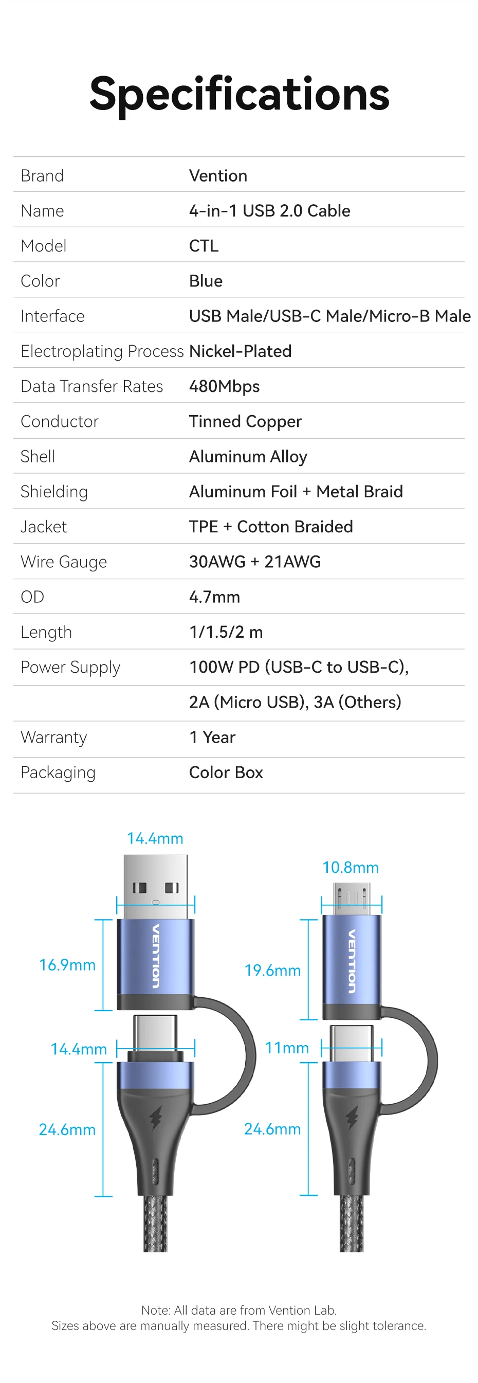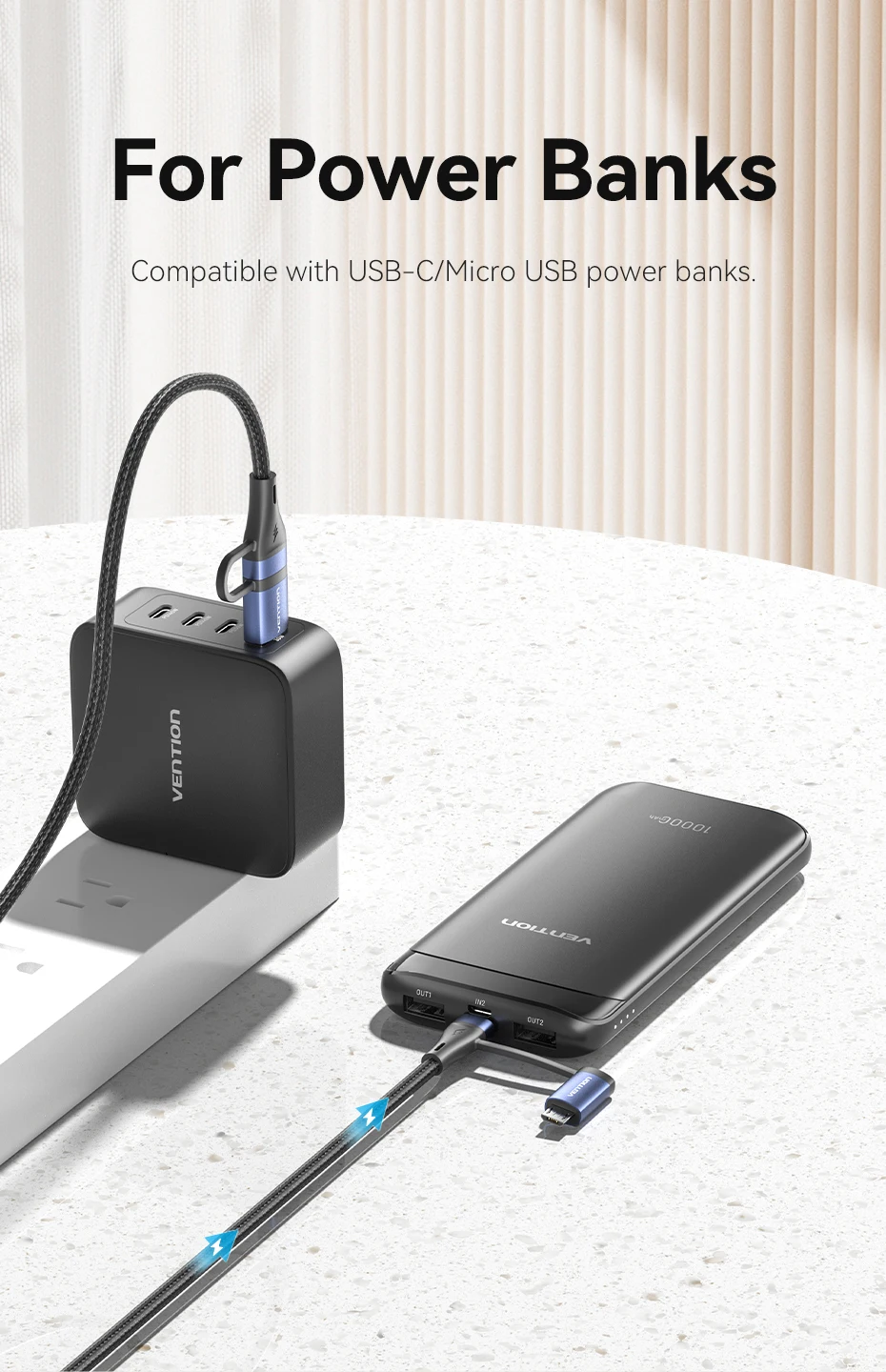 Comprar Vention-Cable de carga rápida 4 en 1 para teléfono móvil, conector USB tipo C de 100W, PD, A Micro USB, para POCO, Xiaomi, Samsung