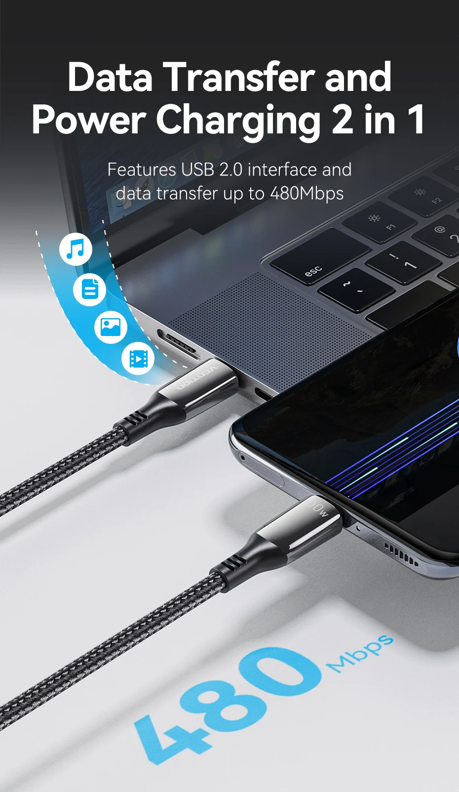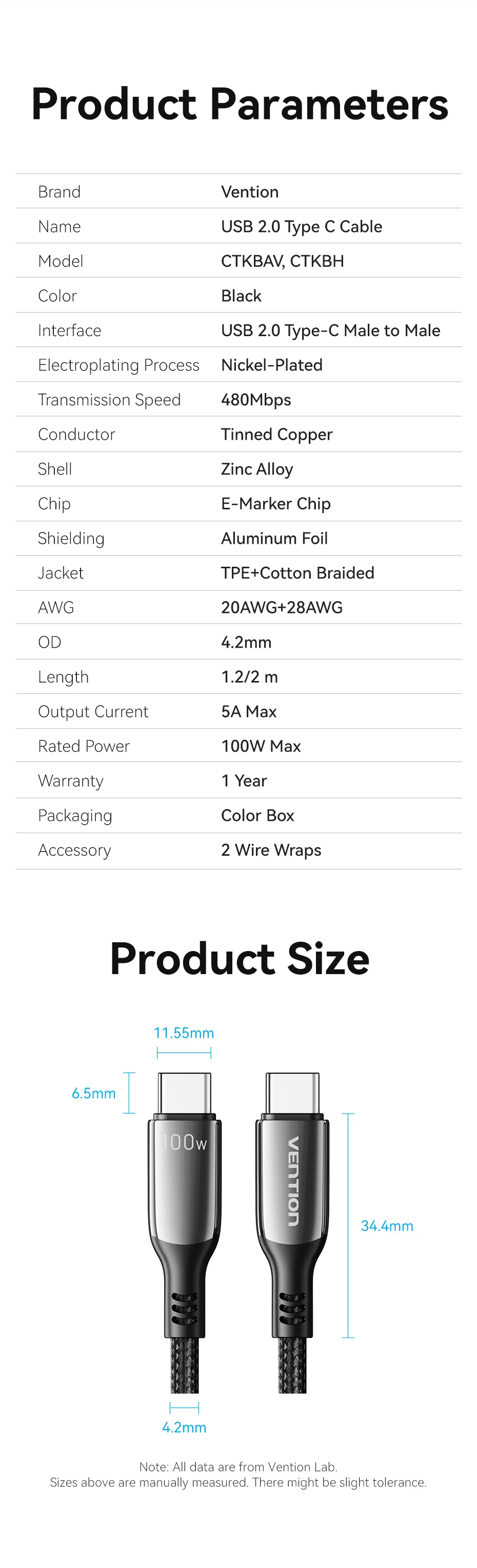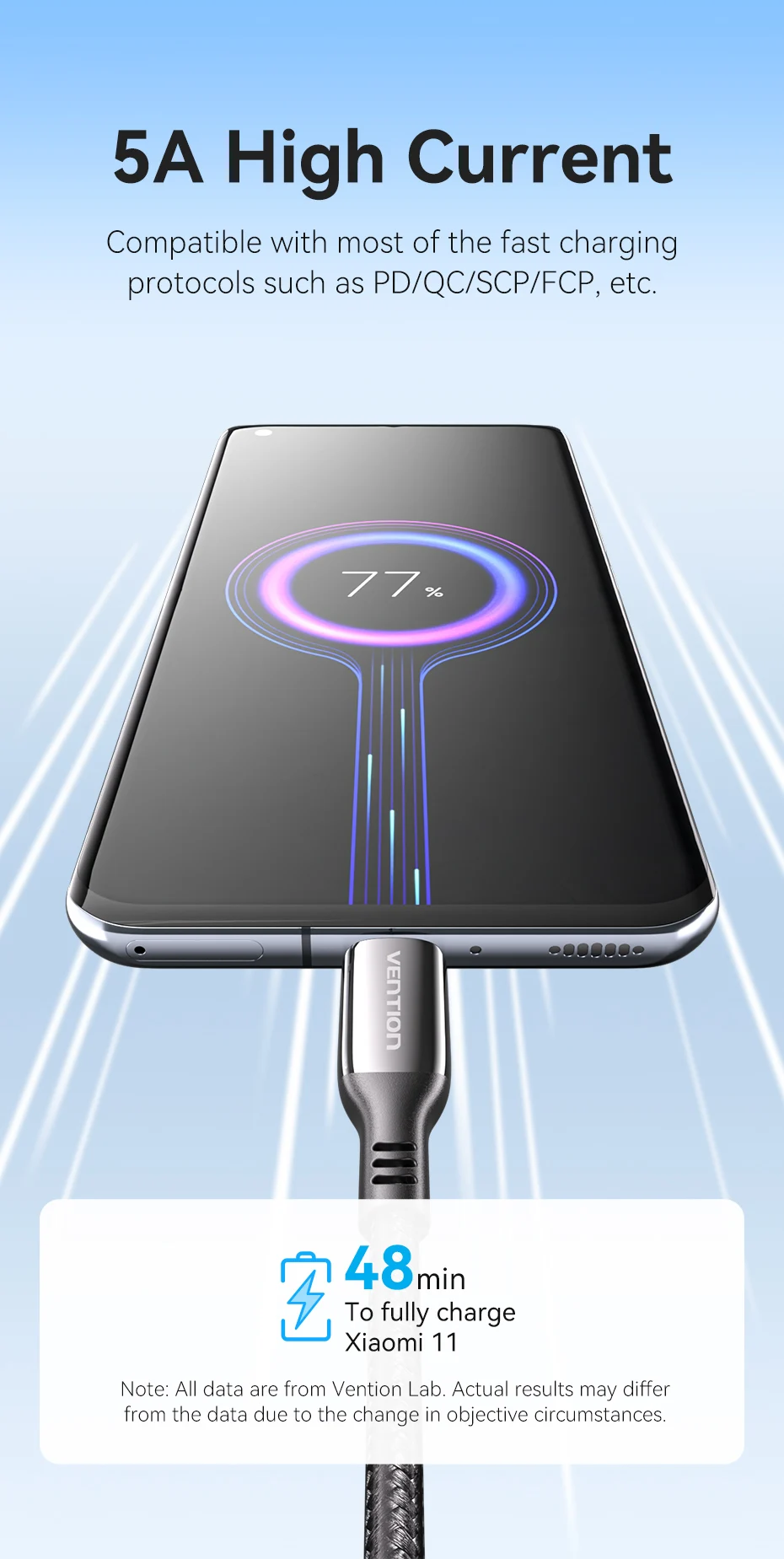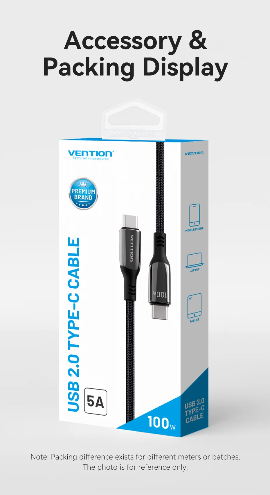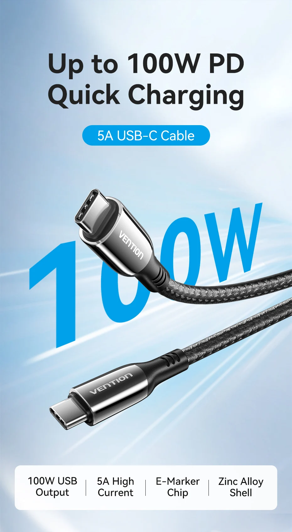 Comprar Vention-Cable de carga rápida para teléfono móvil, Cable PD de 100W tipo C a USB C para MacBook, Samsung, Xiaomi, PD100W, 5A