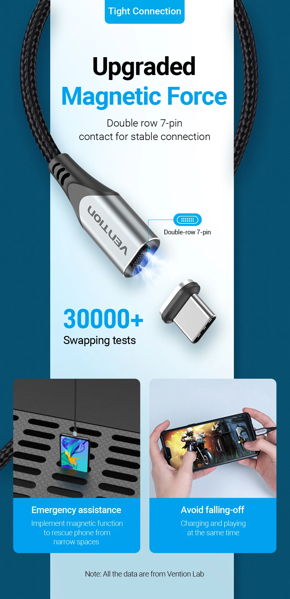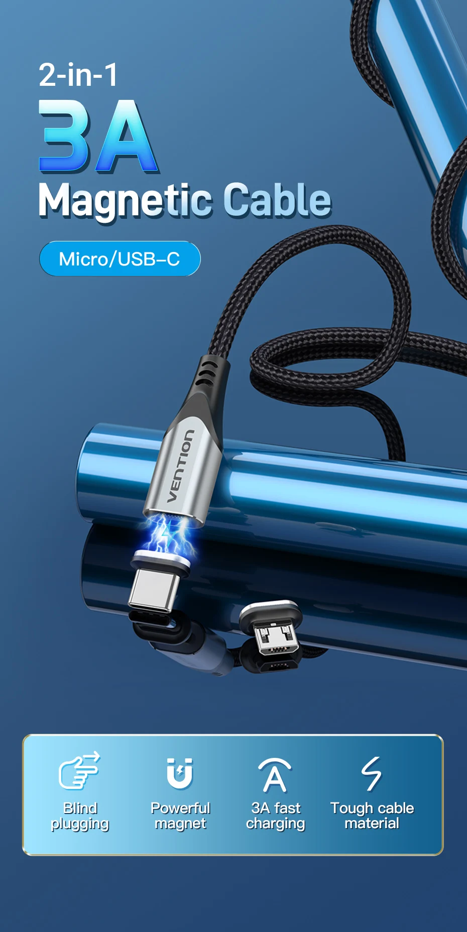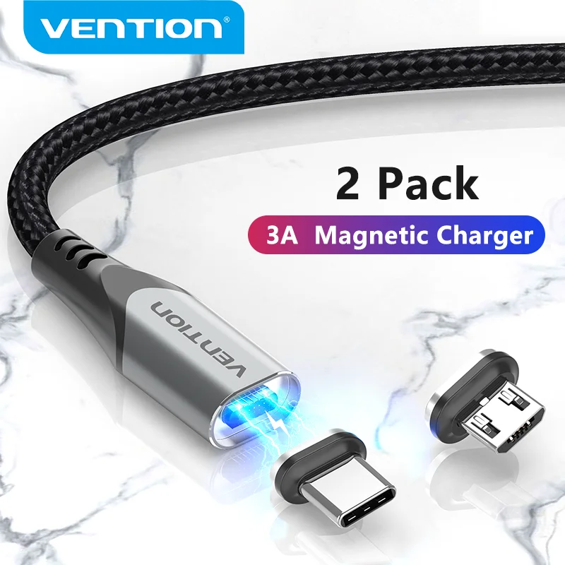 Comprar Vention-Cable de carga USB magnético tipo C, Cable Micro USB para teléfono móvil Xiaomi 3A, 2 unidades