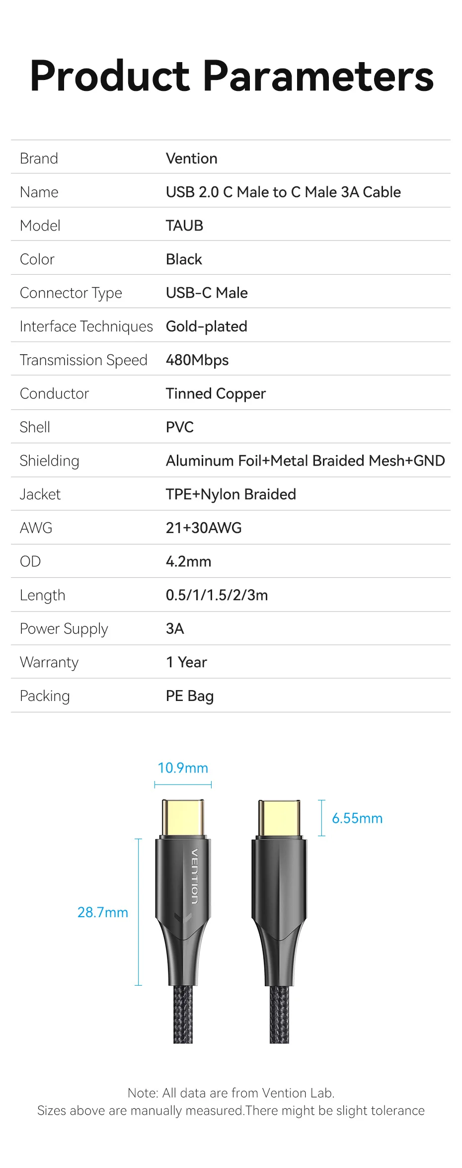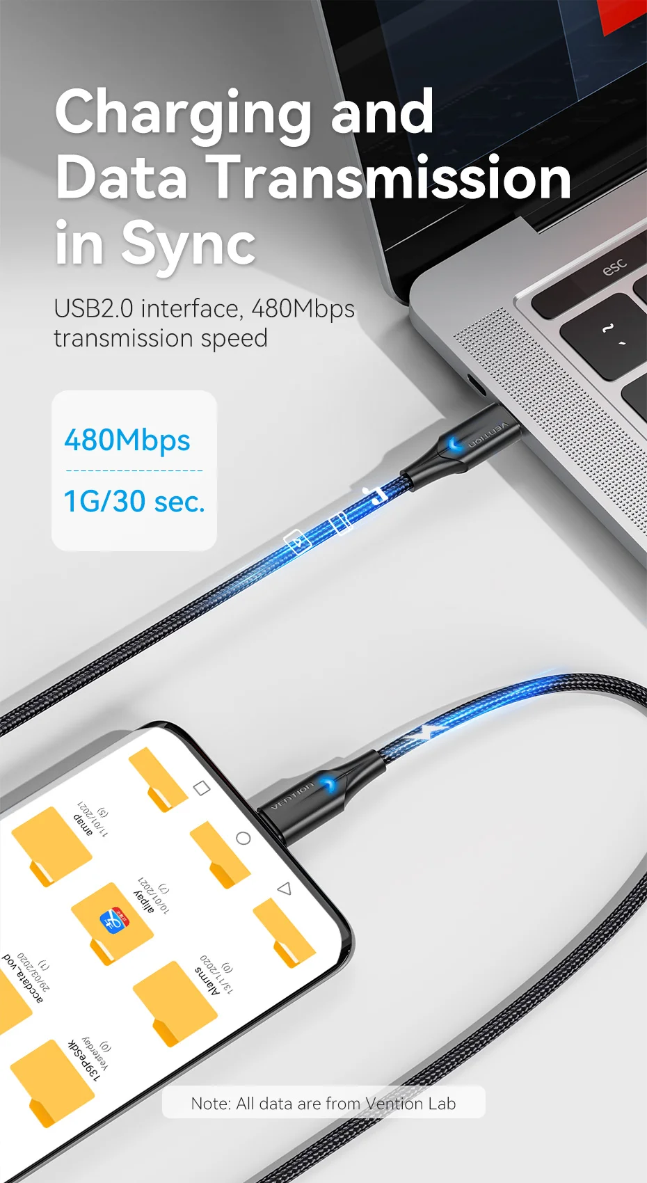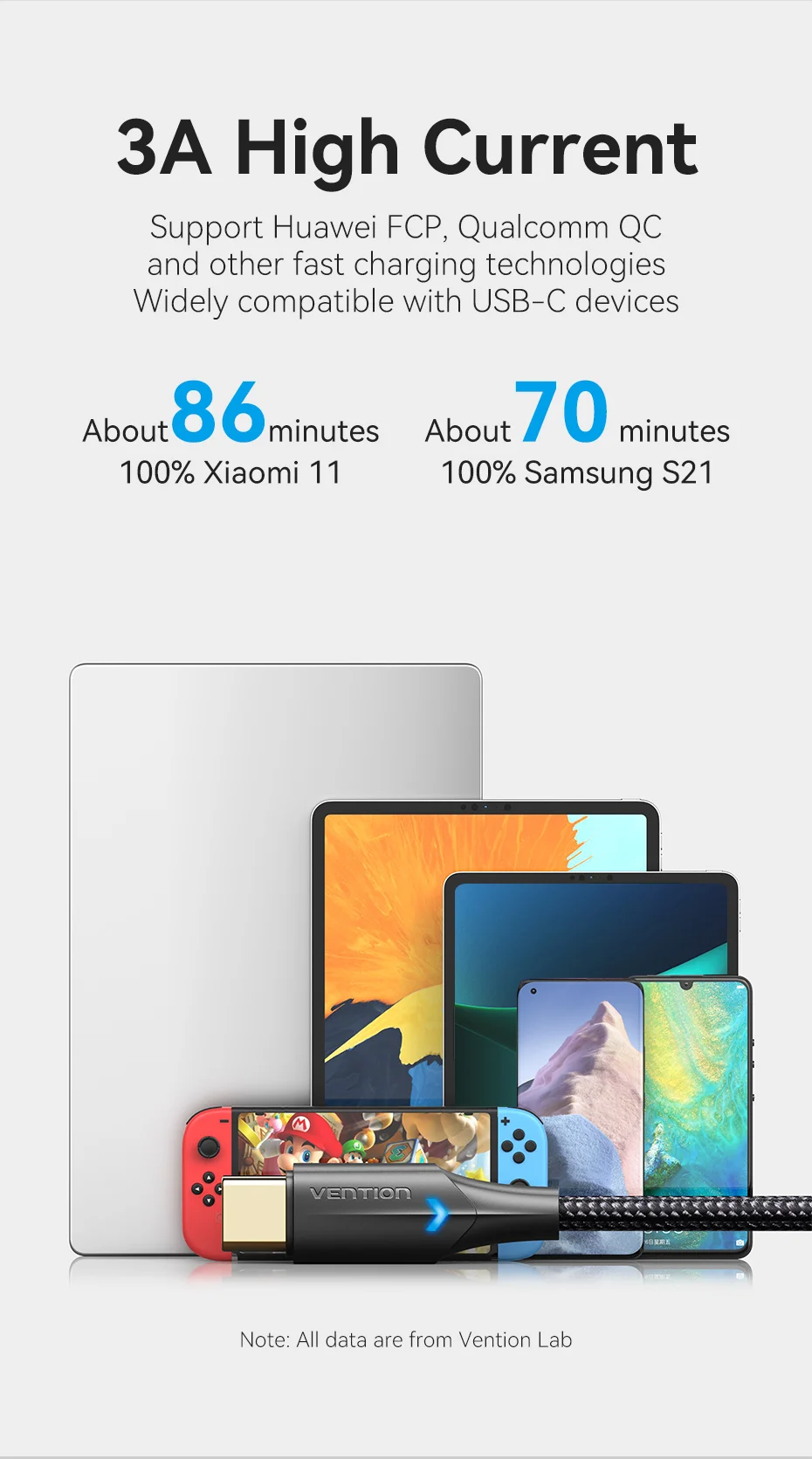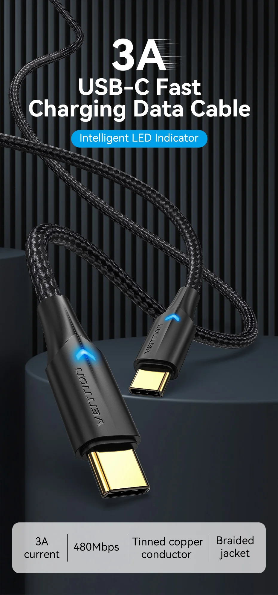Comprar Vention-Cable de carga USB tipo C para MacBook Pro, iPad Pro, Samsung S20, Xiaomi POCO Fast, 60W