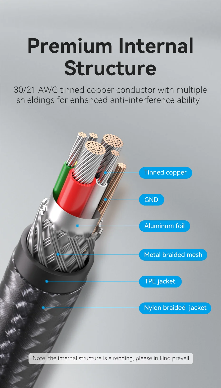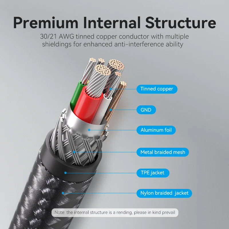 30/21 AWG conductor de cobre estañado con múltiples blindajes para mayor capacidad anti-interferencia