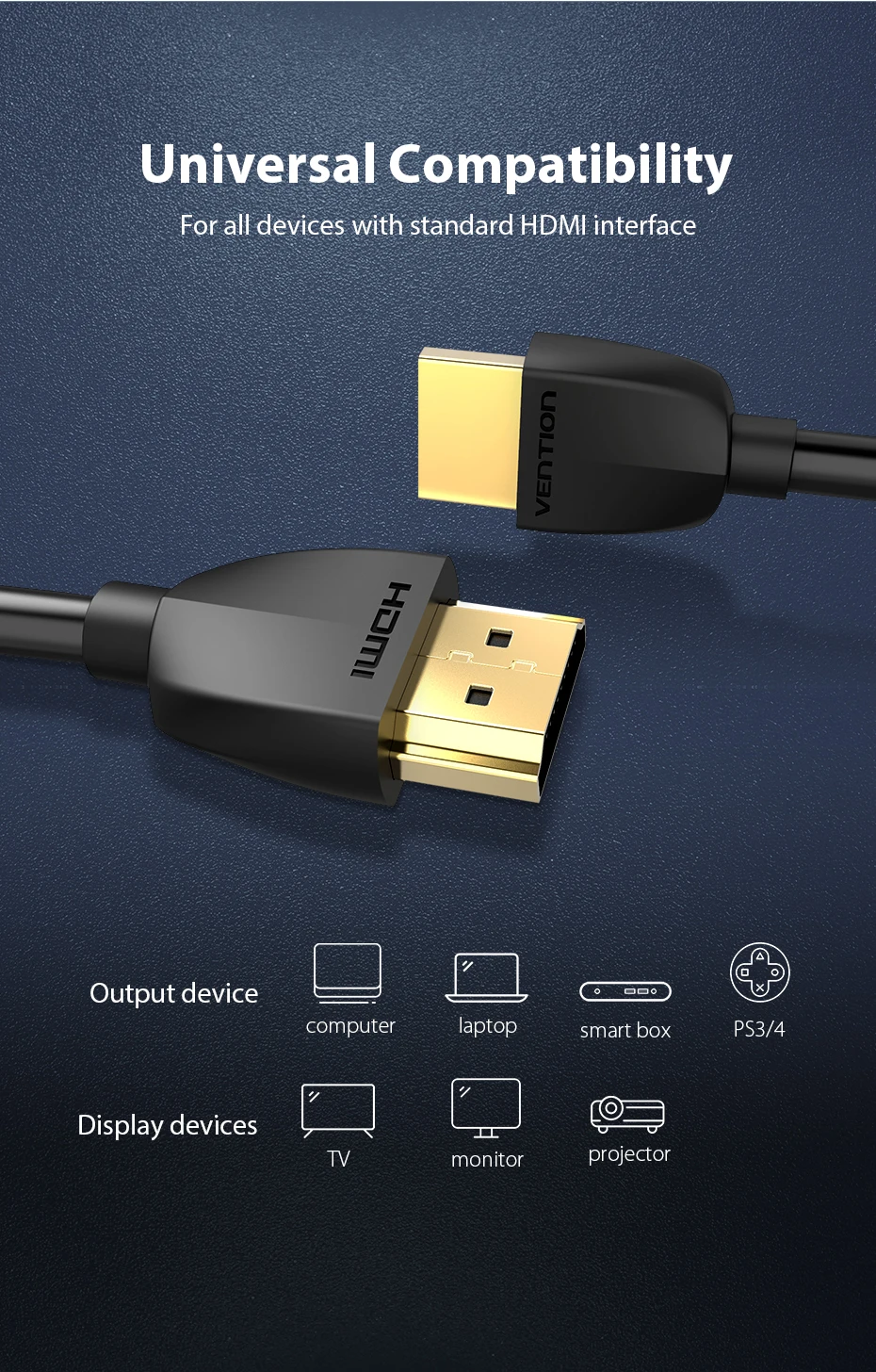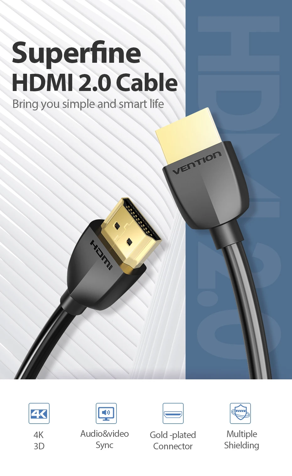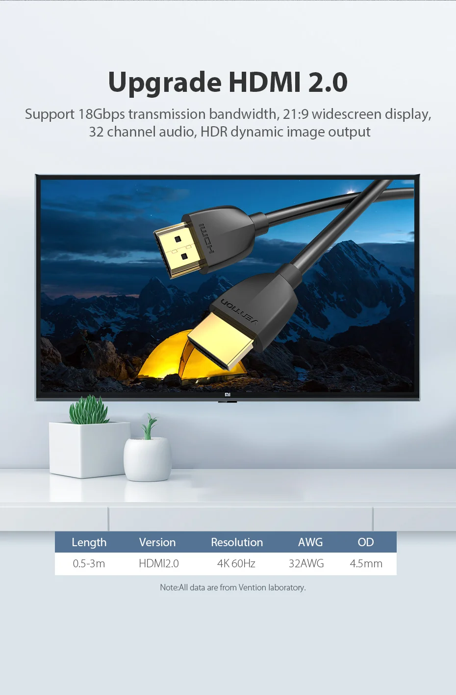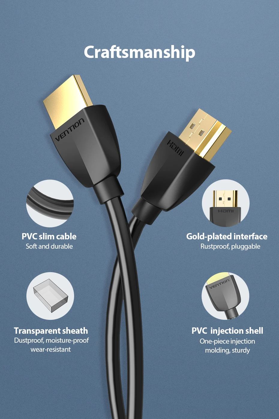 Comprar Vention-Cable Compatible con HDMI 4K Slim para Xiaomi Mi Box PS4, 1m, 2m, puerto chapado en oro, 4K, 1080P, Cable 3D, 4K/60Hz, Compatible con HDMI