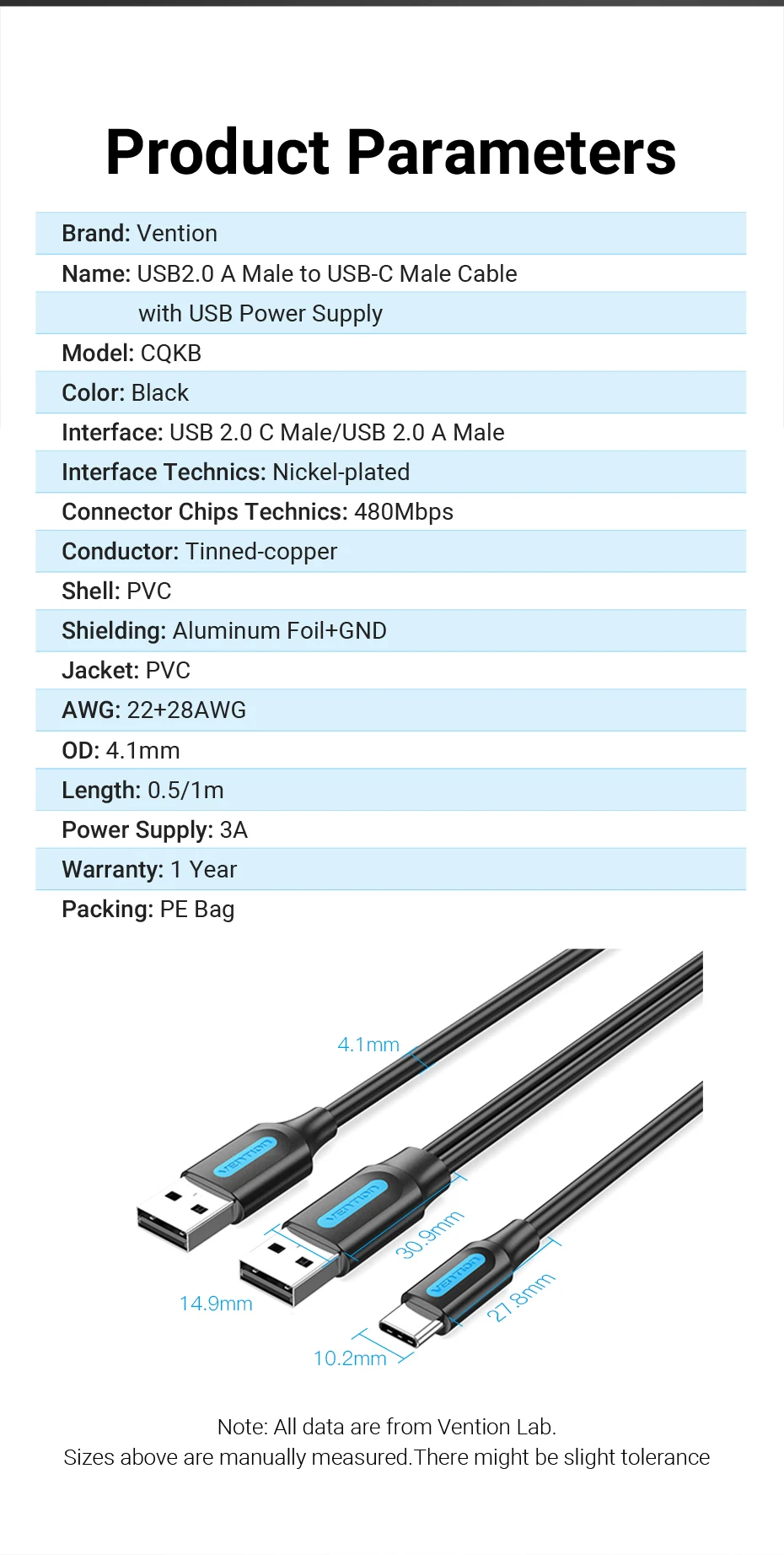 Comprar Vention-Cable de datos de carga rápida para Samsung Note 3 S5, Cable USB Dual tipo C con fuente de alimentación 3A, para disco duro Xiaomi Micro USB 3,0