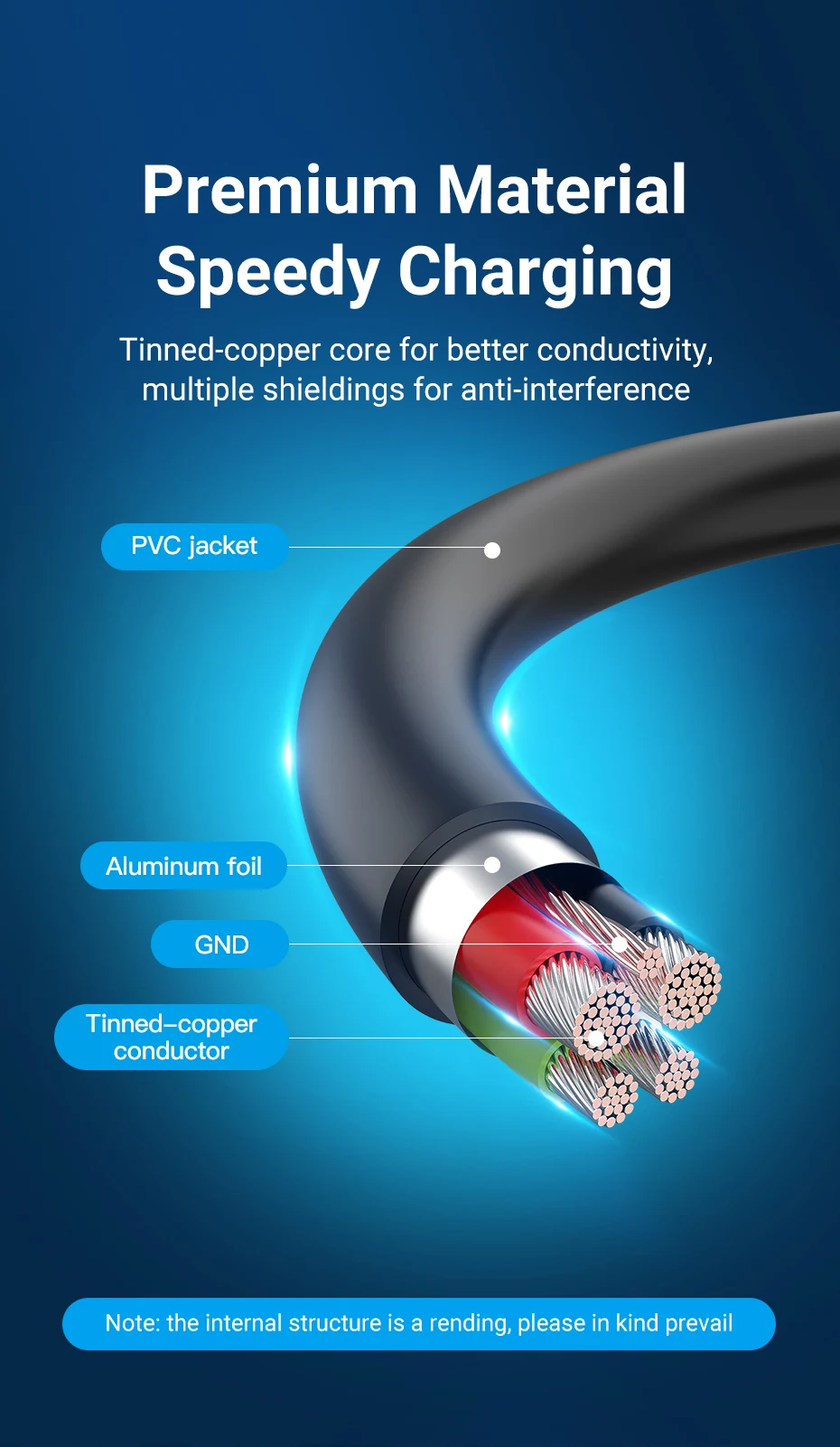 Núcleo de cobre estañado para una mejor conductividad, blindaje múltiple para antiinterferencias
