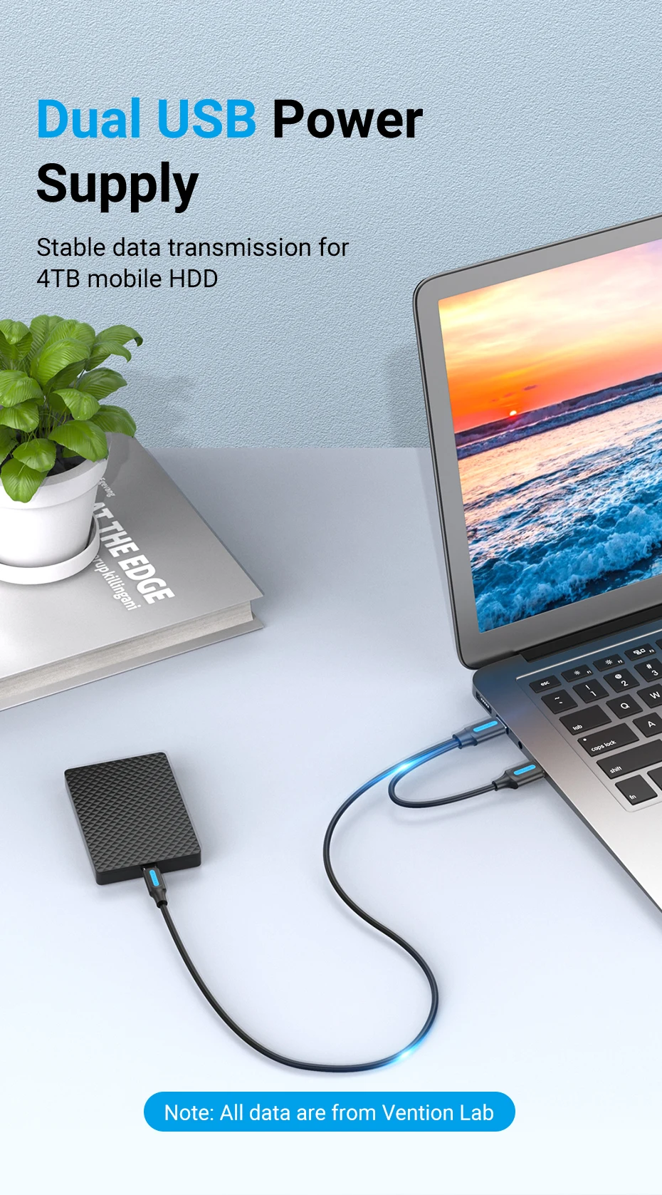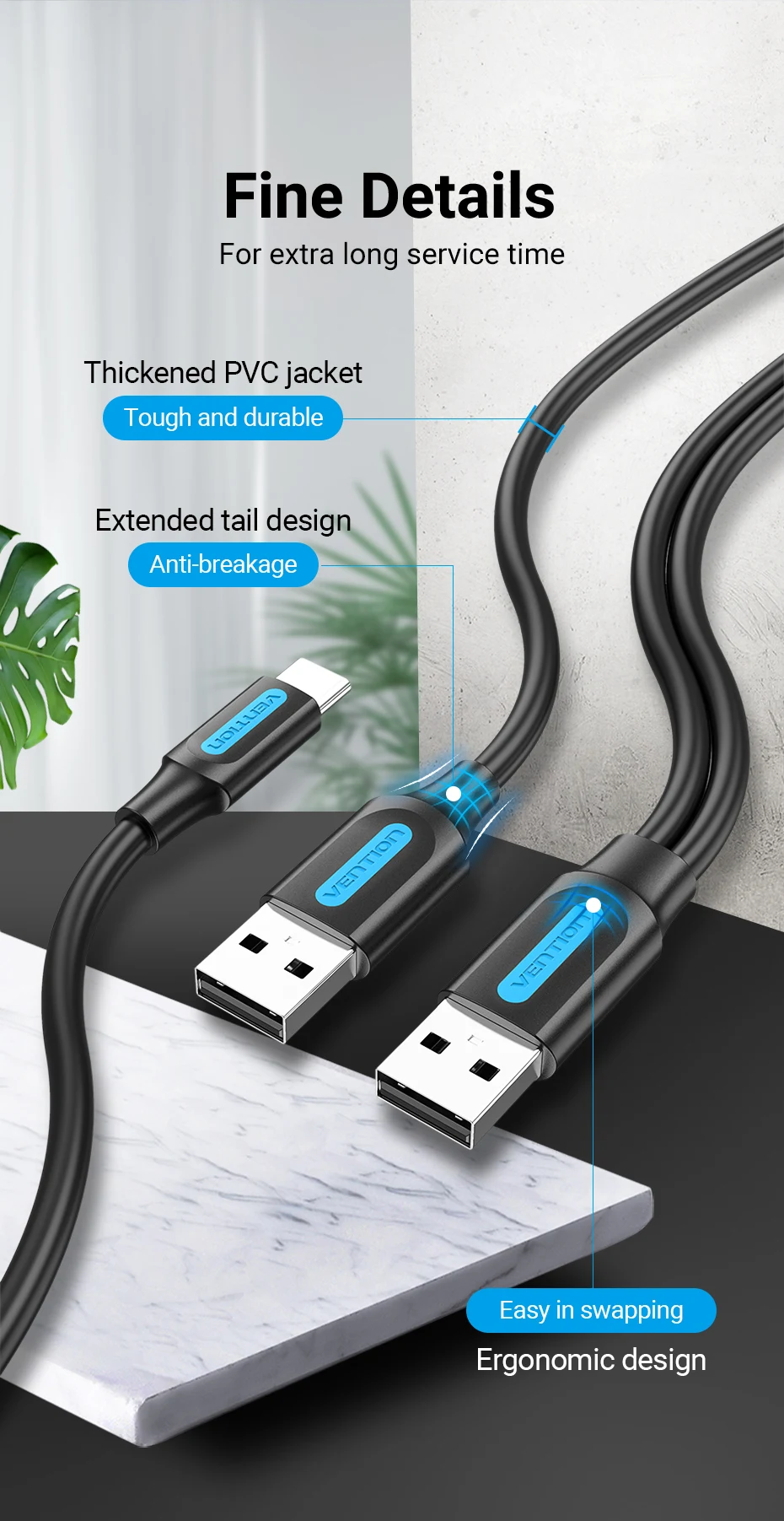 Comprar Vention-Cable de datos de carga rápida para Samsung Note 3 S5, Cable USB Dual tipo C con fuente de alimentación 3A, para disco duro Xiaomi Micro USB 3,0