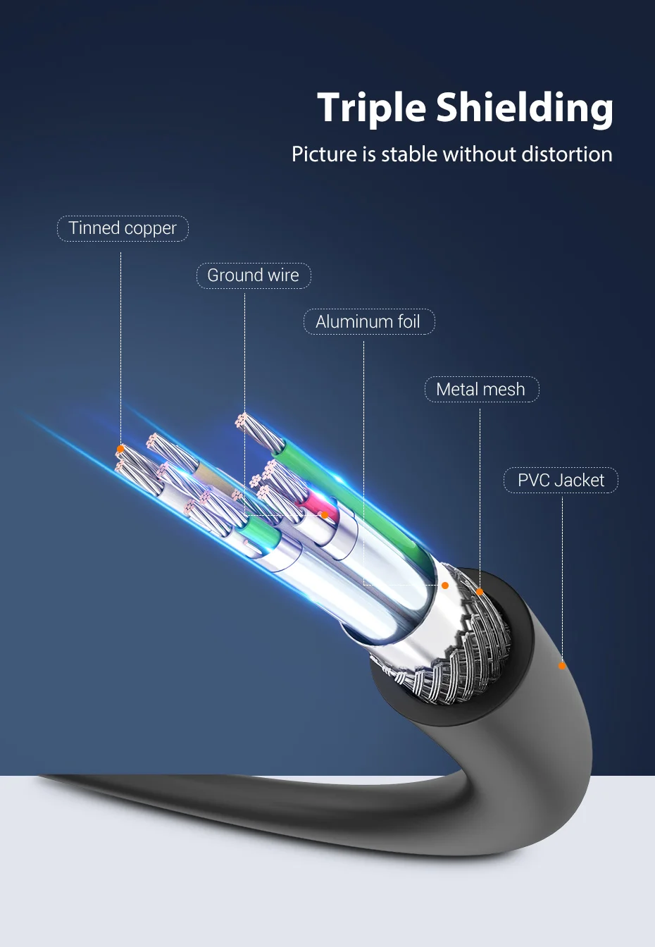 Triple blindaje, cobre estañado e interfaz chapada en oro aseguran que la imagen sea estable sin distorsión.