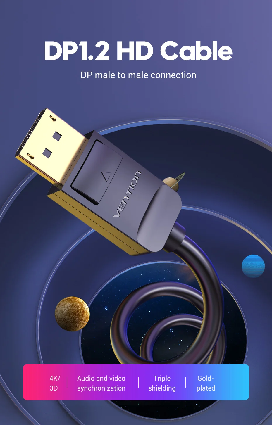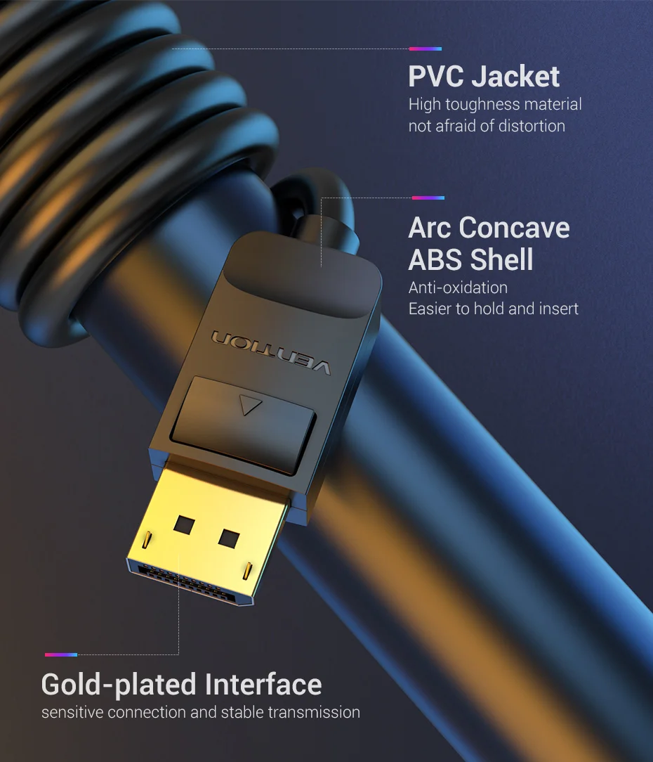 Este cable Display Port 1,2 admite alta resolución de hasta 4K(3840*2160) con un ancho de banda máximo de 21,6 Gbps, soporte de audio adicional.