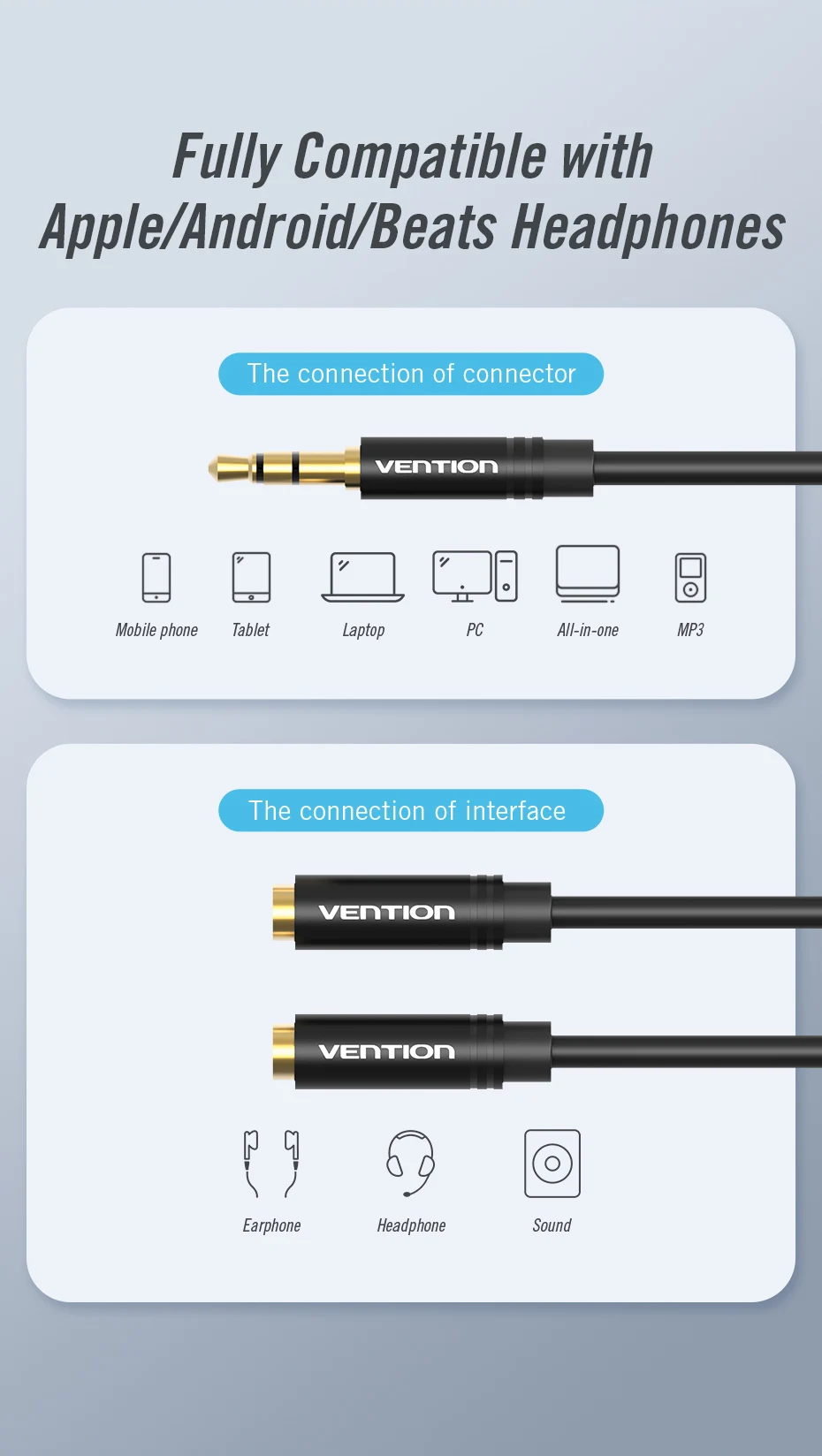 Comprar Vention-Cable divisor de Audio para auriculares, conector macho a 2 hembra de 3,5mm, adaptador auxiliar para iPhone, Huawei, reproductor MP3