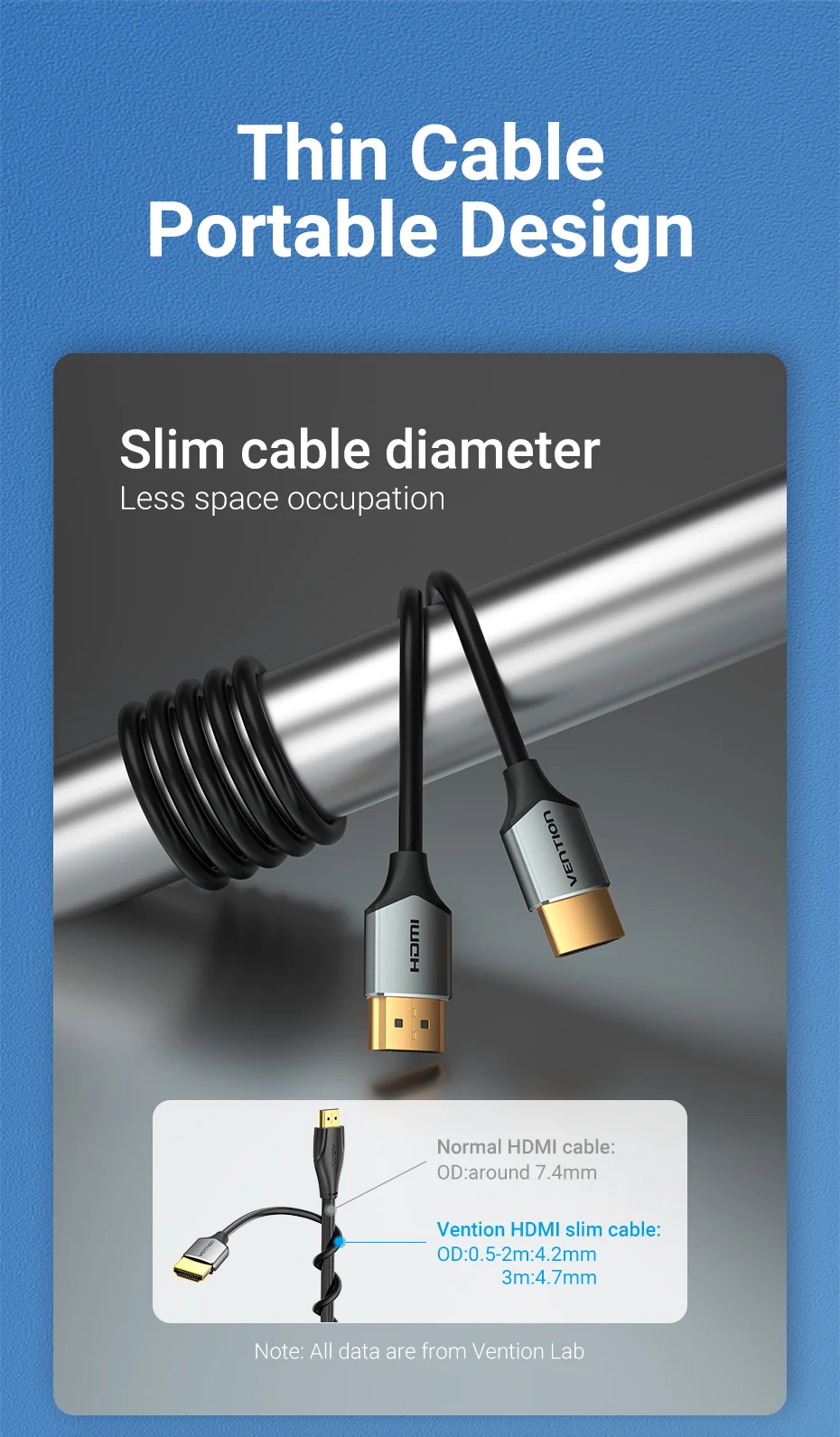 Los cables HDMI ULTRA-SLIM y flexibles pesan menos de 40 g (0,5 M) con un diseño delgado que es un 50% menos que un cable HDMI normal.