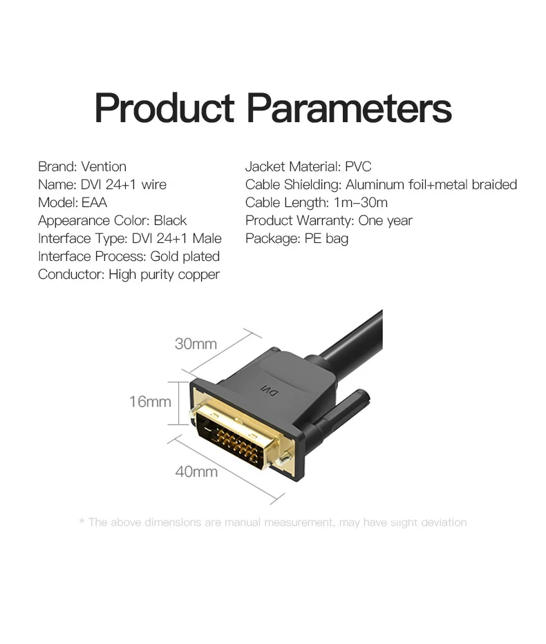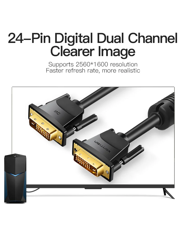Vention-Cable DVI D24 + 1, Cable DVI a DVI macho a macho, Cable de vídeo de 3m/1m/2m 5m para ordenador, proyector, portátil, Monitor de TV