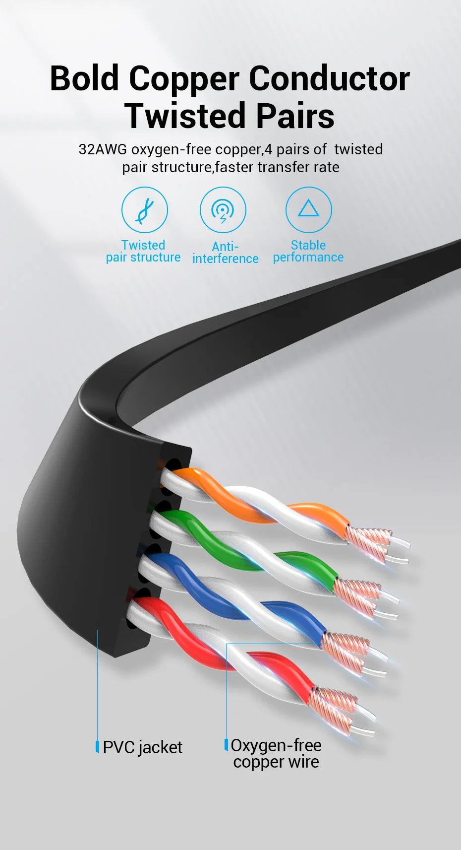 Comprar Vention-Cable Ethernet Cat6 Gigabit de alta velocidad, Cable de Internet de 1000Mbps, red LAN RJ45, para PC, PS5, Xbox, 2 paquetes