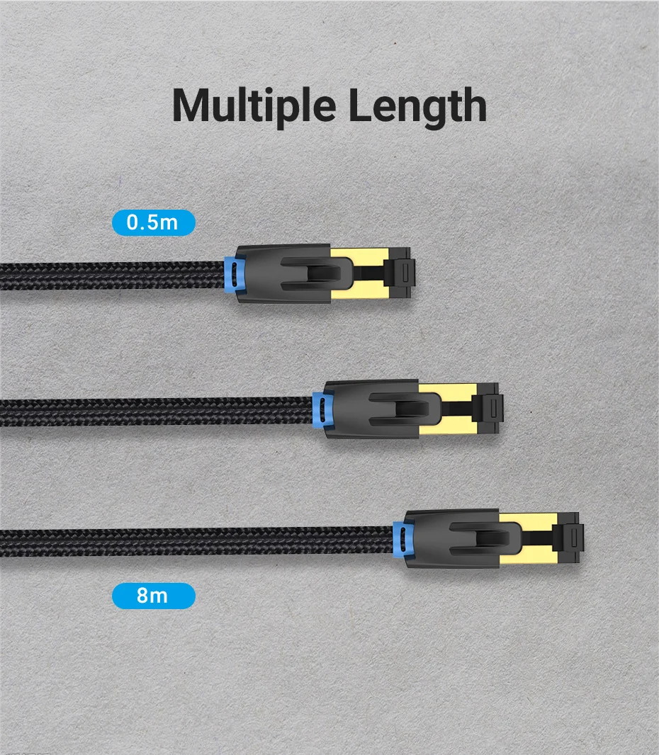 Comprar Vention-Cable Ethernet Cat8 de nailon trenzado, Cable de Internet SFTP de 40Gbps, 2000Mhz, para módem, enrutador, Cable de conexión de red para juegos, paquete de 2