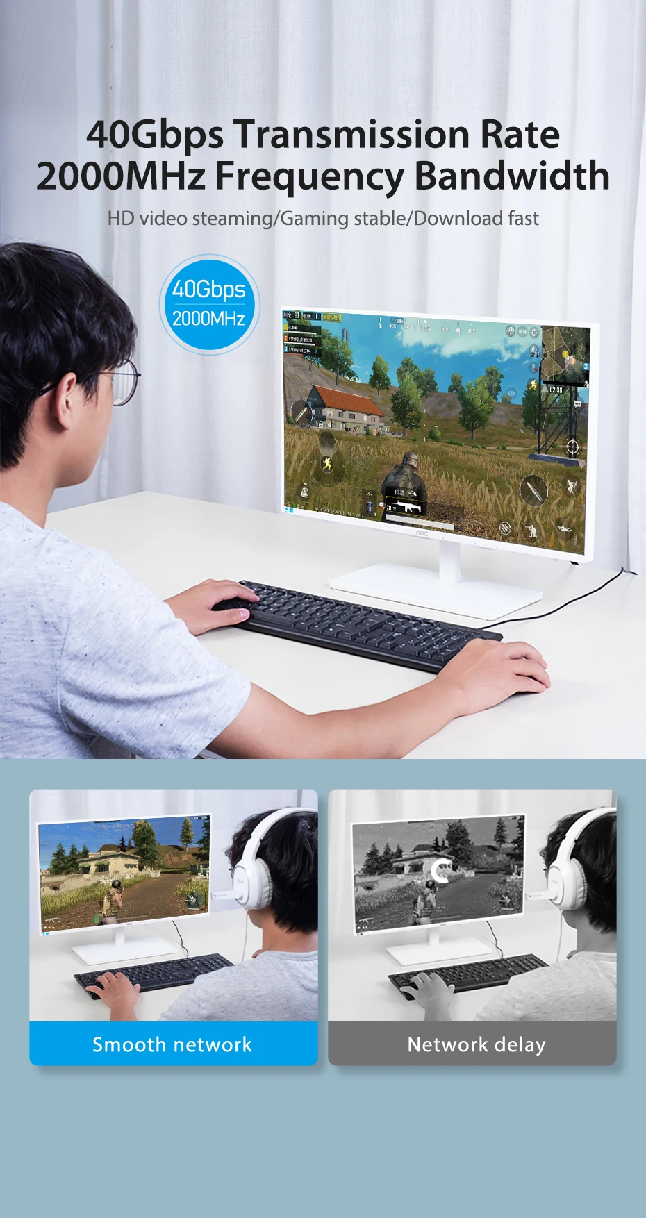 1)High Speed Transmission - CAT 8 Ethernet cable support bandwidth up to 2000MHz and transmitting speed up to 40Gbps. This Ethernet cable meet the requirements for efficient and do not waste time for waiting.
