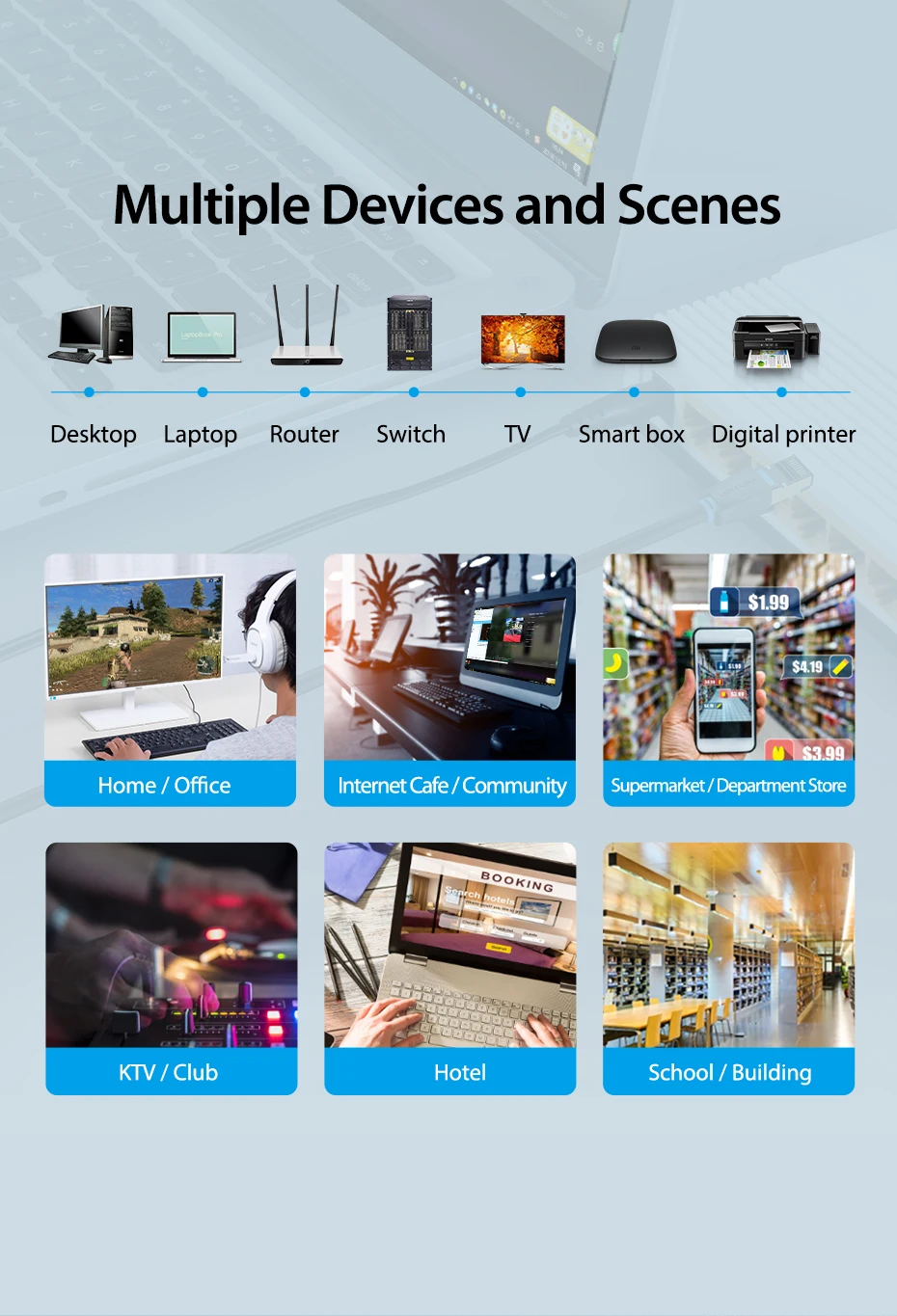3)Plug and Play - This network cable is easy to network cabling and carry. And this Ethernet cord is working efficiently both outdoor and indoor.