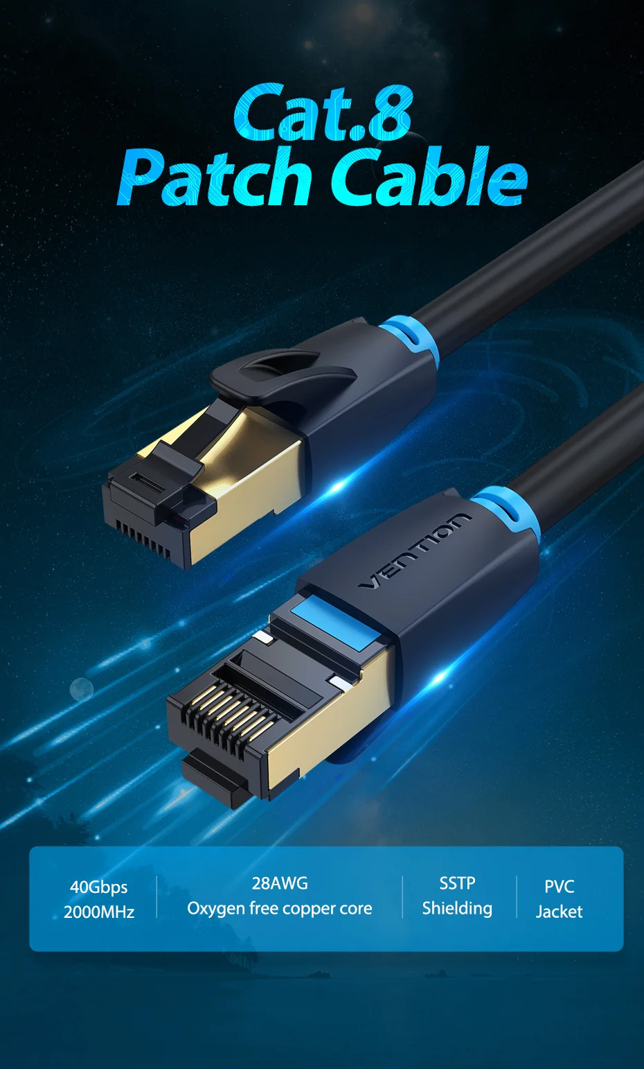 Comprar Vention-Cable Ethernet Cat8 STTP 40Gbps 2000MHz Cat 8 RJ45, Cable de conexión Lan para enrutador, módem, Internet RJ 45