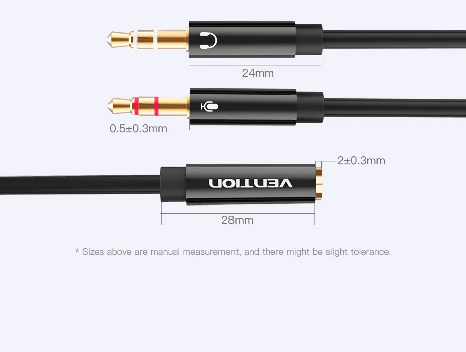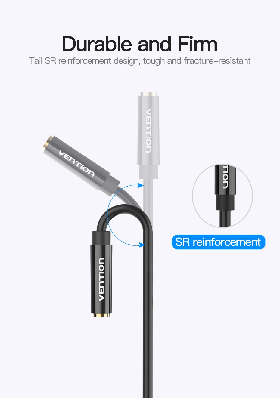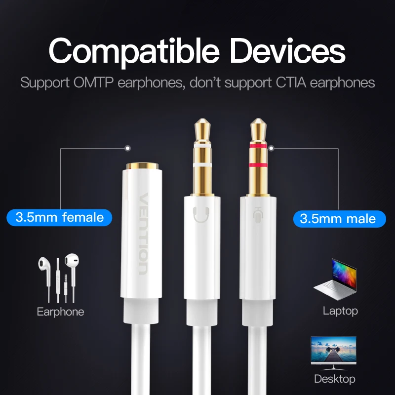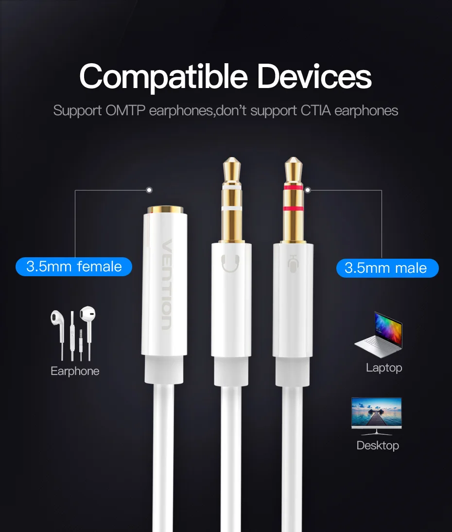 Vention-Cable de extensión de Audio, divisor de auriculares para ordenador, 3,5mm, hembra a 2 macho, 3,5mm, divisor de micrófono, adaptador de auriculares a PC, 1m