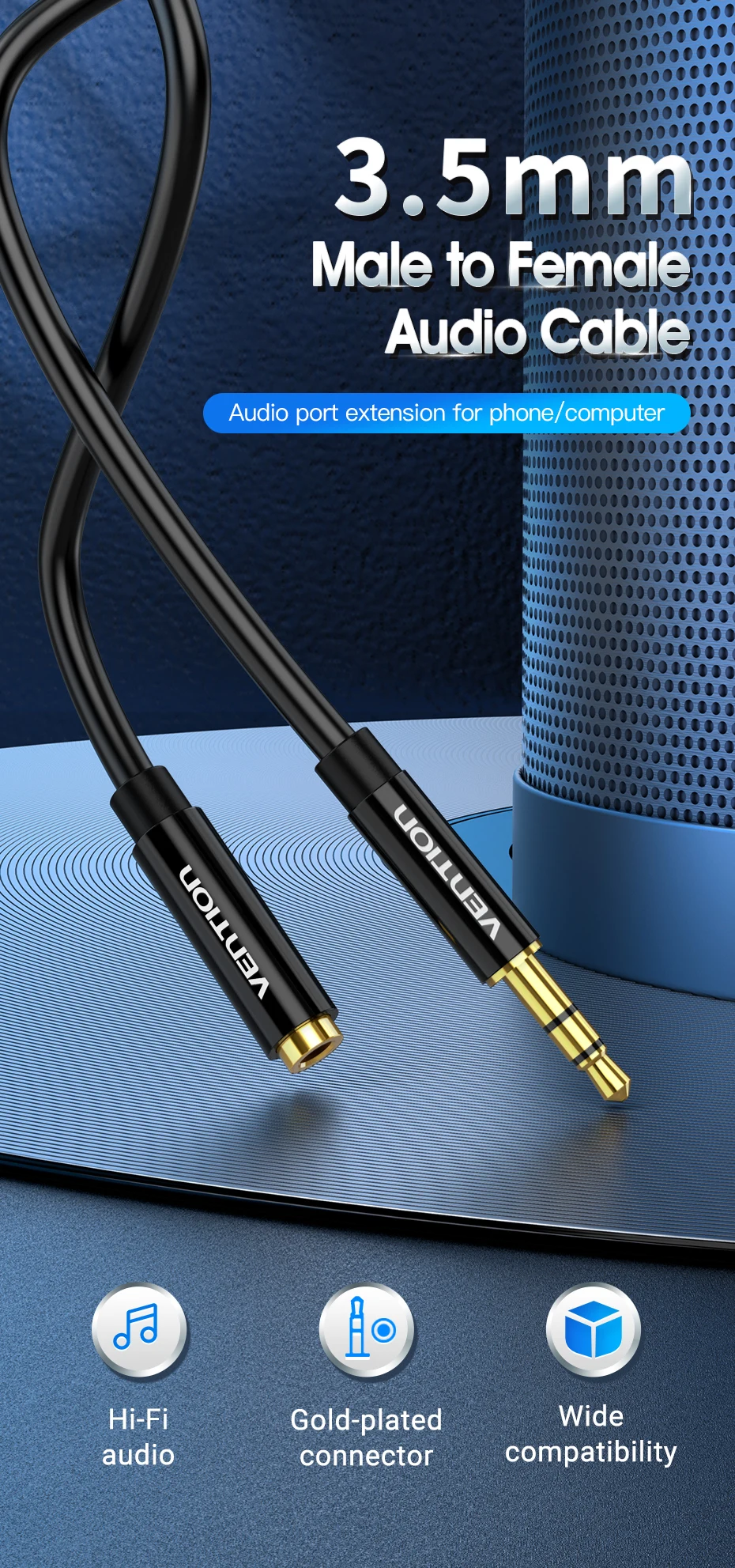 Comprar Vention-Cable de extensión Auxiliar Jack 3,5 para coche, portátil, Mini PC, TV, Xiaomi, Huawei, estéreo de 3,5mm, auriculares, altavoz