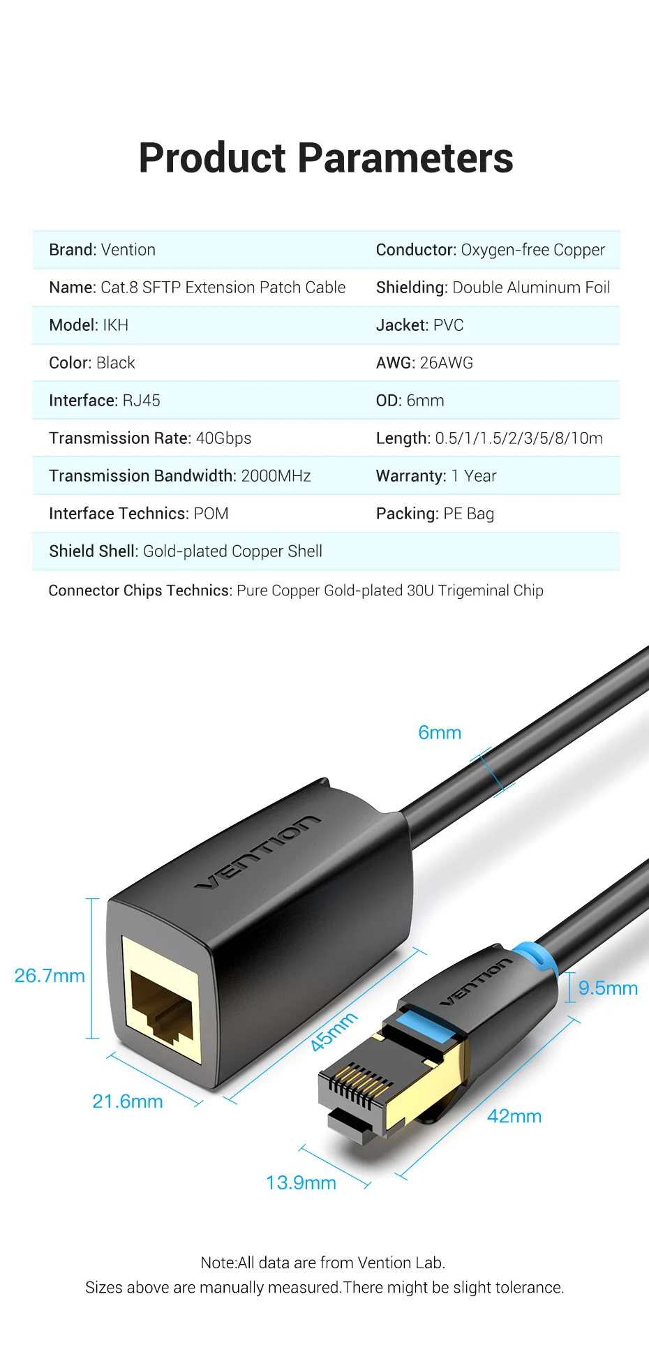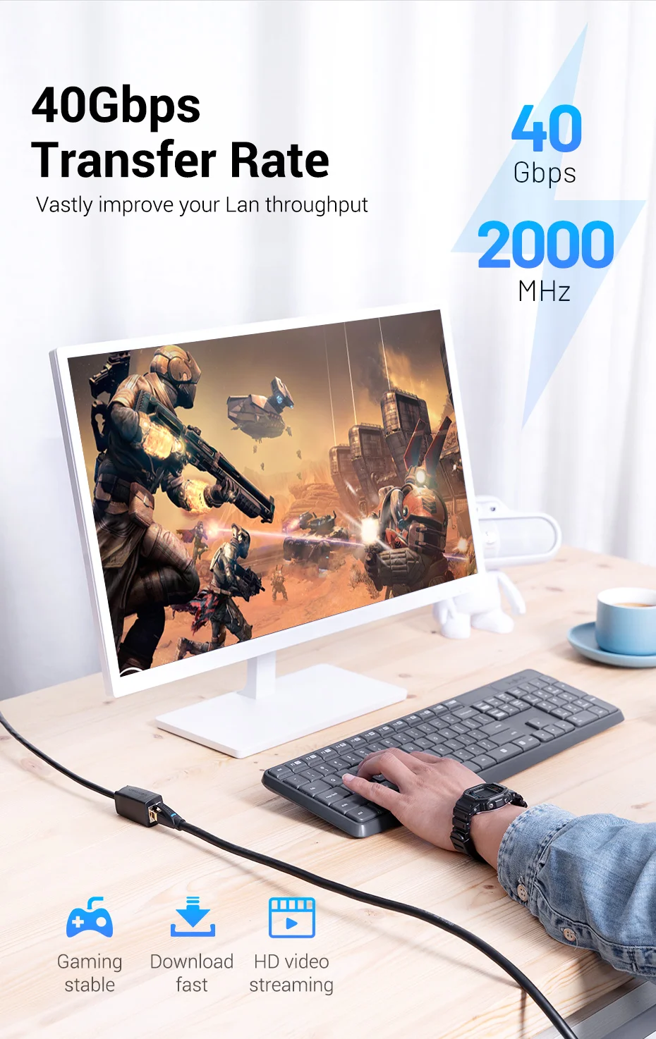 Comprar Vention-Cable de extensión Ethernet Cat8, adaptador de Cable de parche extensor para enrutador, módem, PC, Cat 8, SFTP, 40gbps, RJ45