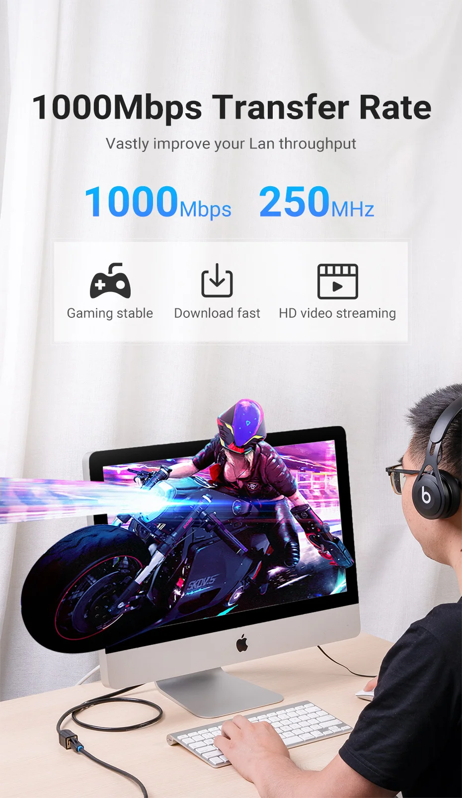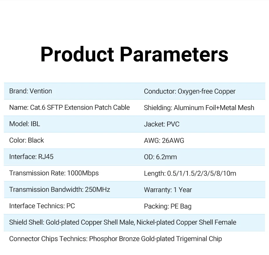 Comprar Vention Cable de extensión Ethernet RJ45 Cat6 SFTP macho a hembra adaptador de Cable de conexión de extensión Cat7 para PC portátil Cable Ethernet 3